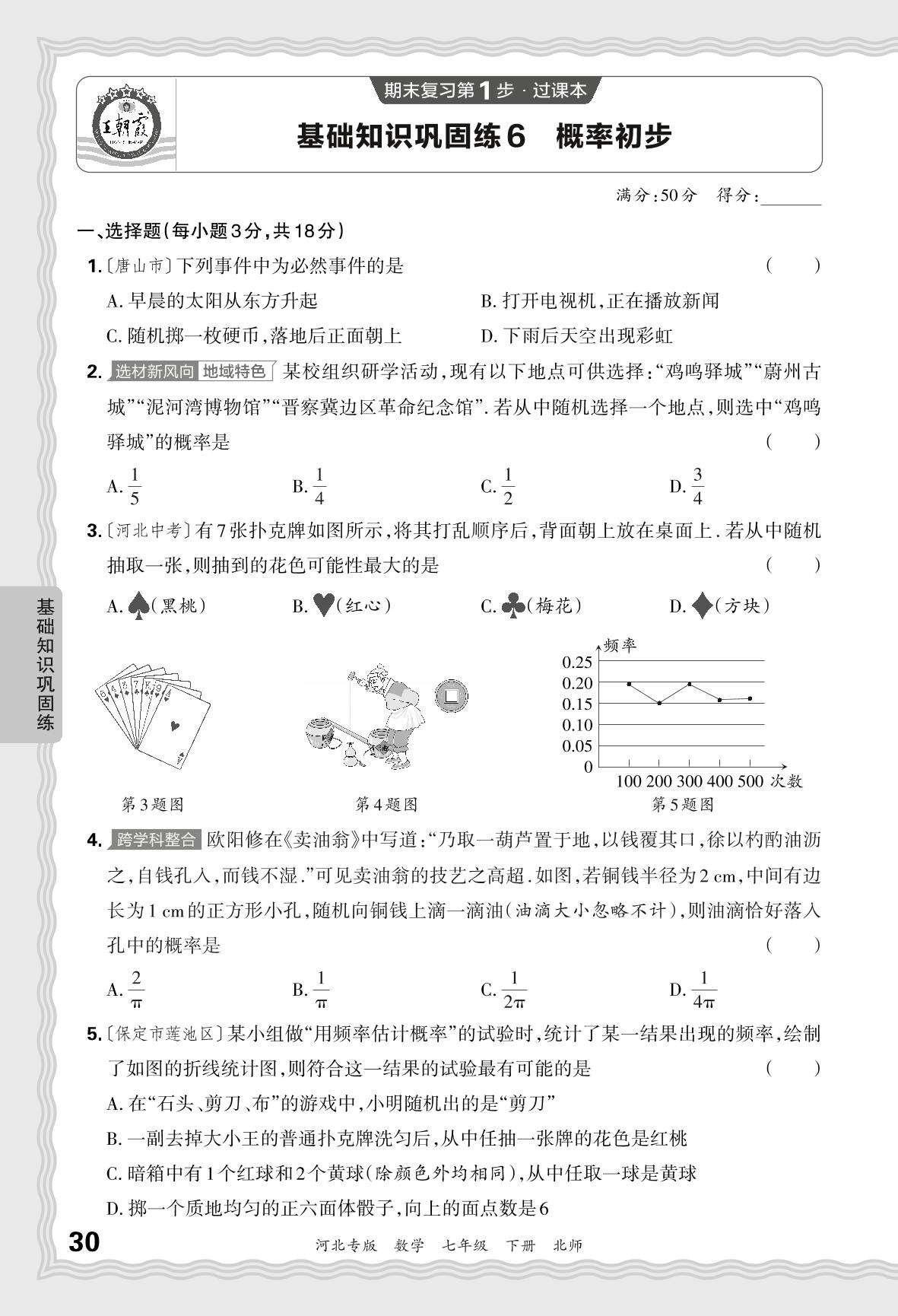 2024春下册七年级数学北师版 期末过课本河北版·基础知识巩固练 概率初步【6】