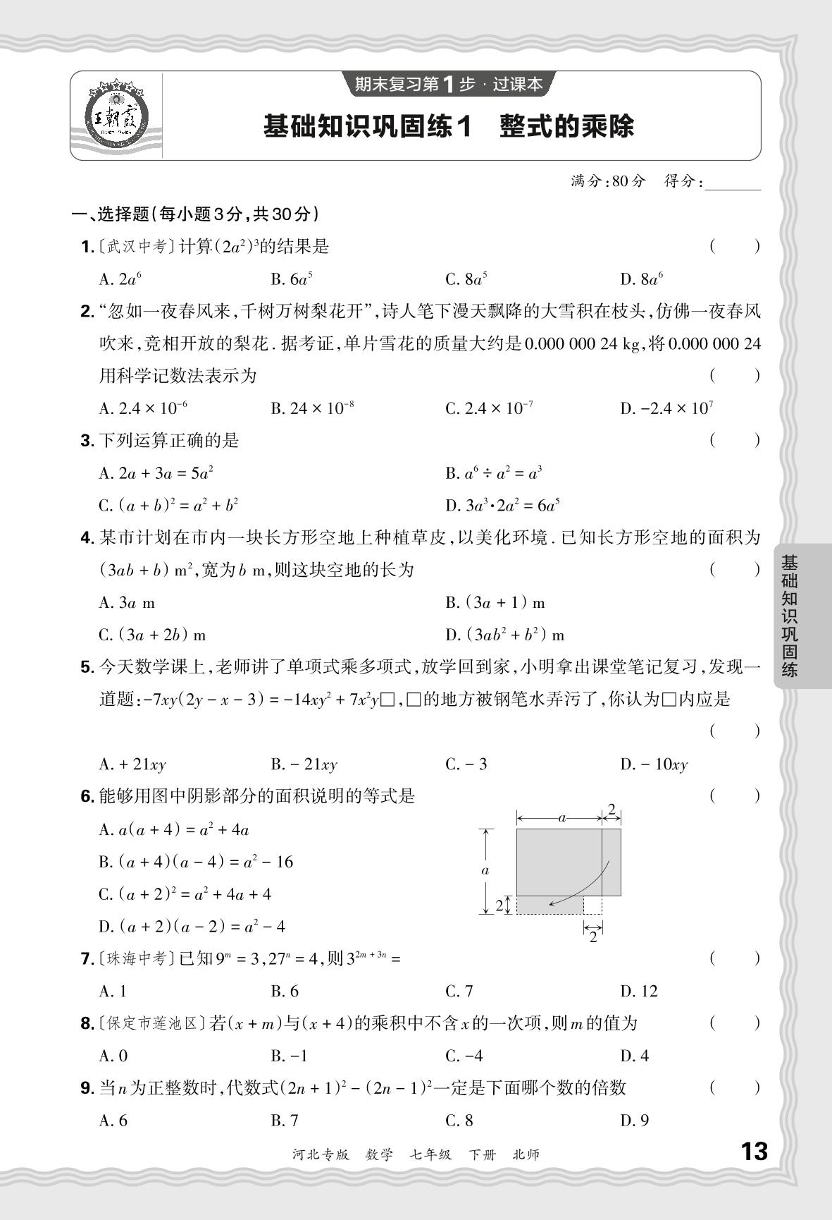 2024春下册七年级数学北师版 期末过课本河北版·基础知识巩固练 整式的乘除【1】