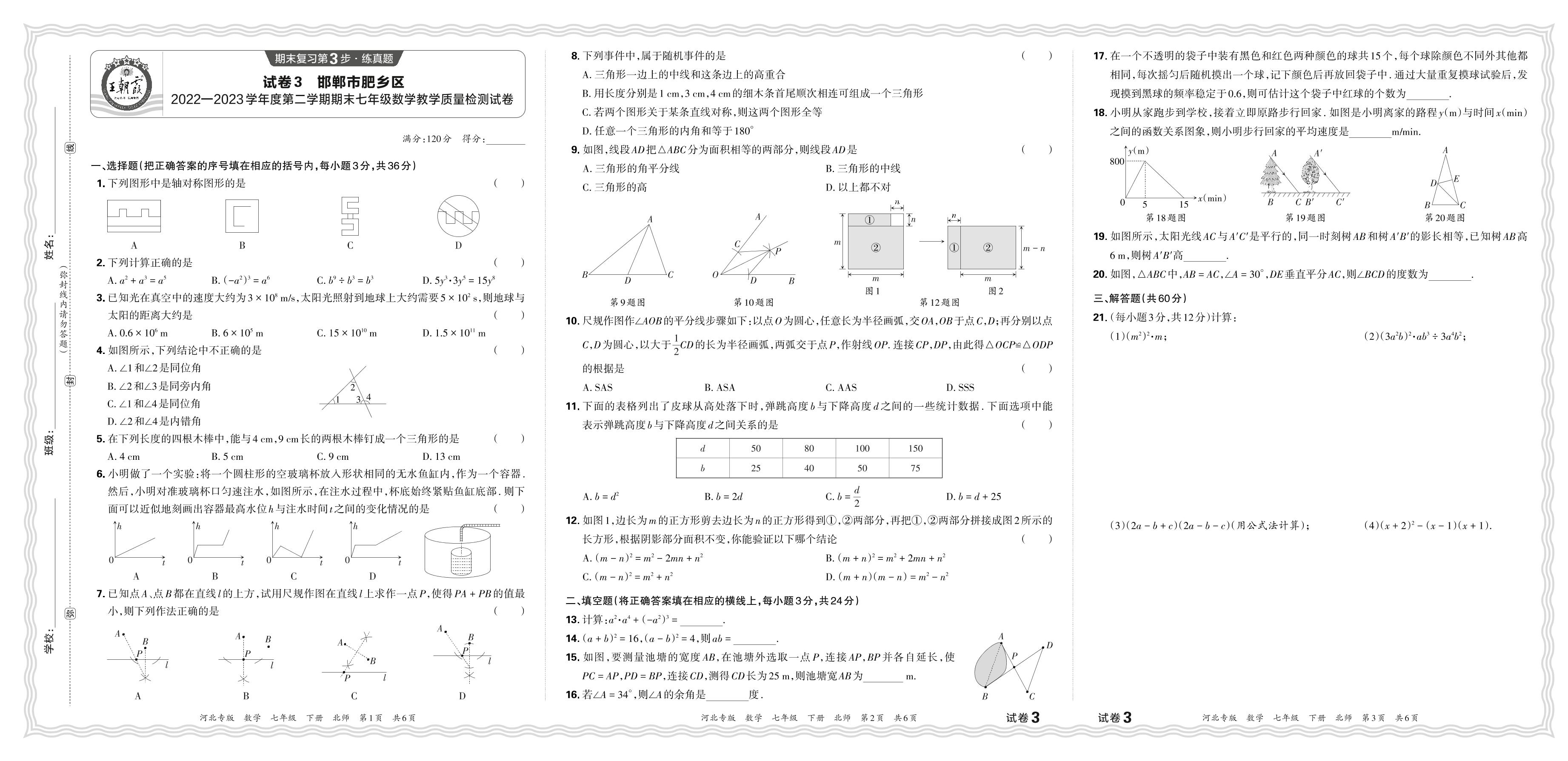 河北省邯郸市肥乡区2022-2023学年度第二学期期末七年级数学教学质量检测试卷(北师版)【3】