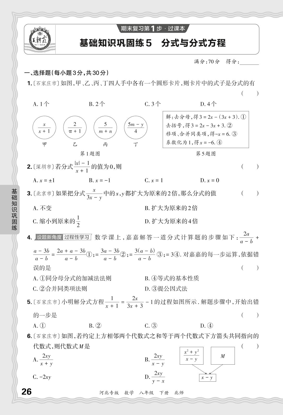 2024春下册八年级数学北师版 期末过课本河北版·基础知识巩固练 分式与分式方程【5】