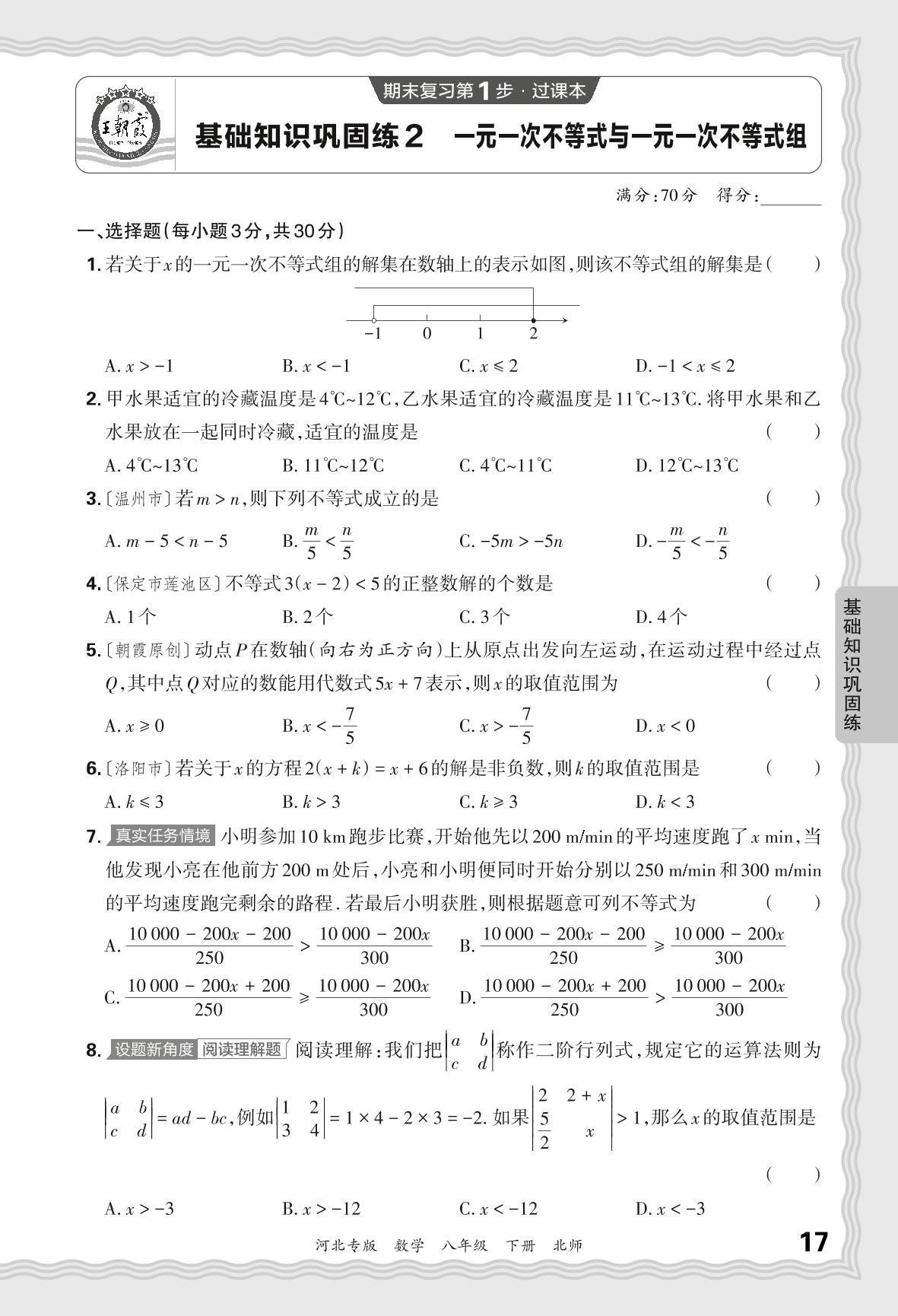 2024春下册八年级数学北师版 期末过课本河北版·基础知识巩固练 一元一次不等式与一元一次不等式组【2】
