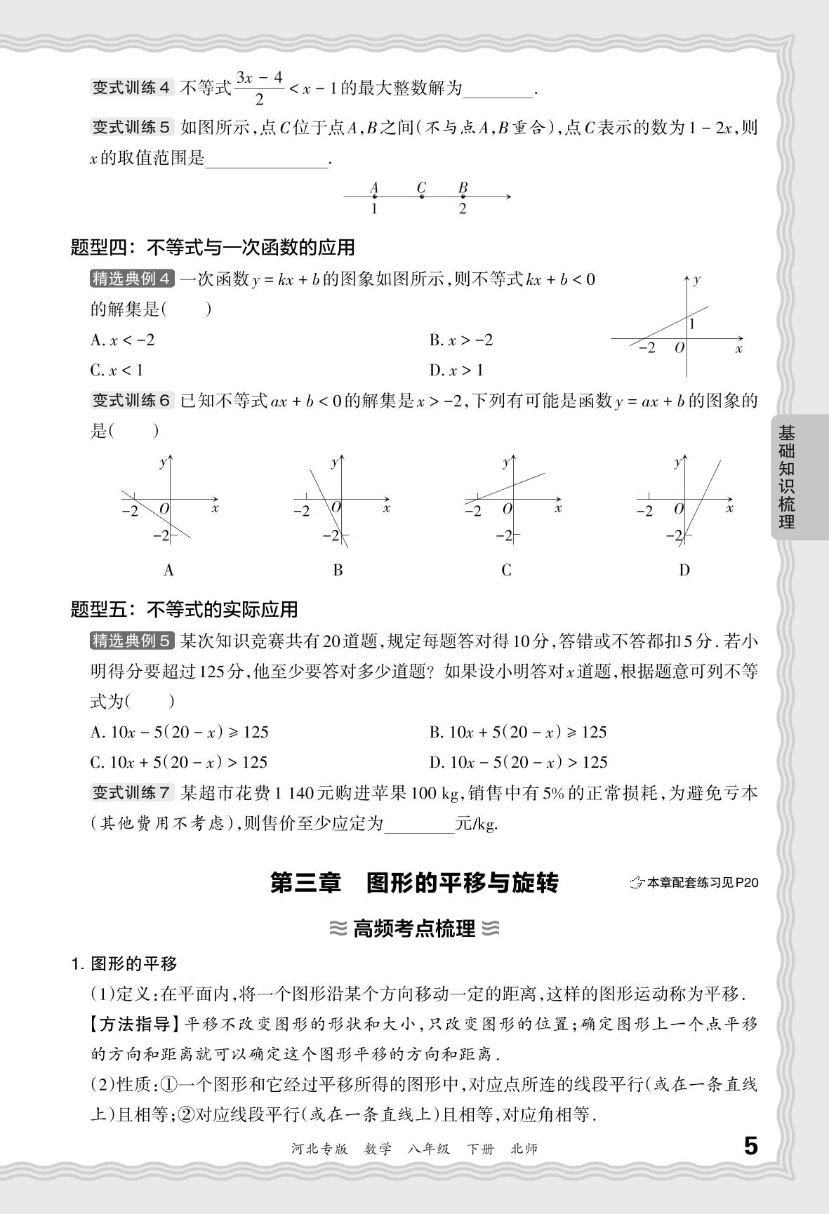 2024春下册八年级数学北师版 期末过课本河北版·基础知识梳理 第三章 图形的平移与旋转