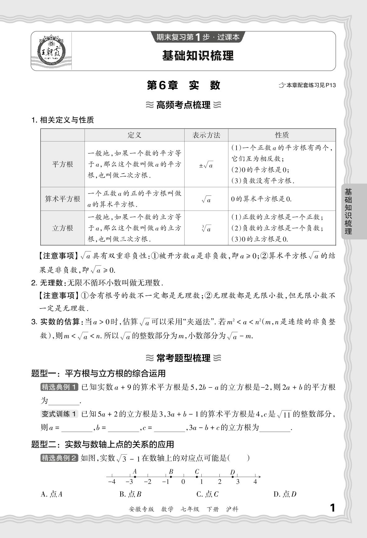 2024春下册七年级数学沪科版 期末过课本安徽版·基础知识梳理 第6章 实数