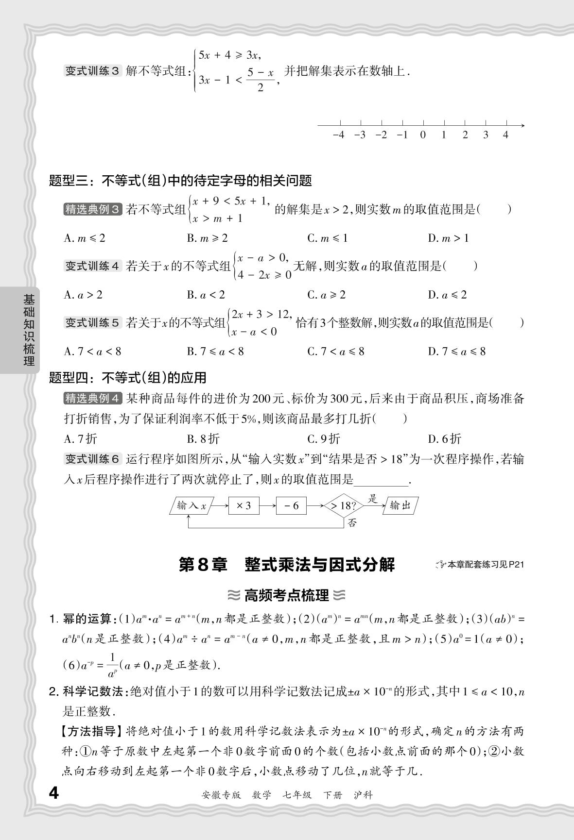 2024春下册七年级数学沪科版 期末过课本安徽版·基础知识梳理 第8章 整式乘法与因式分解