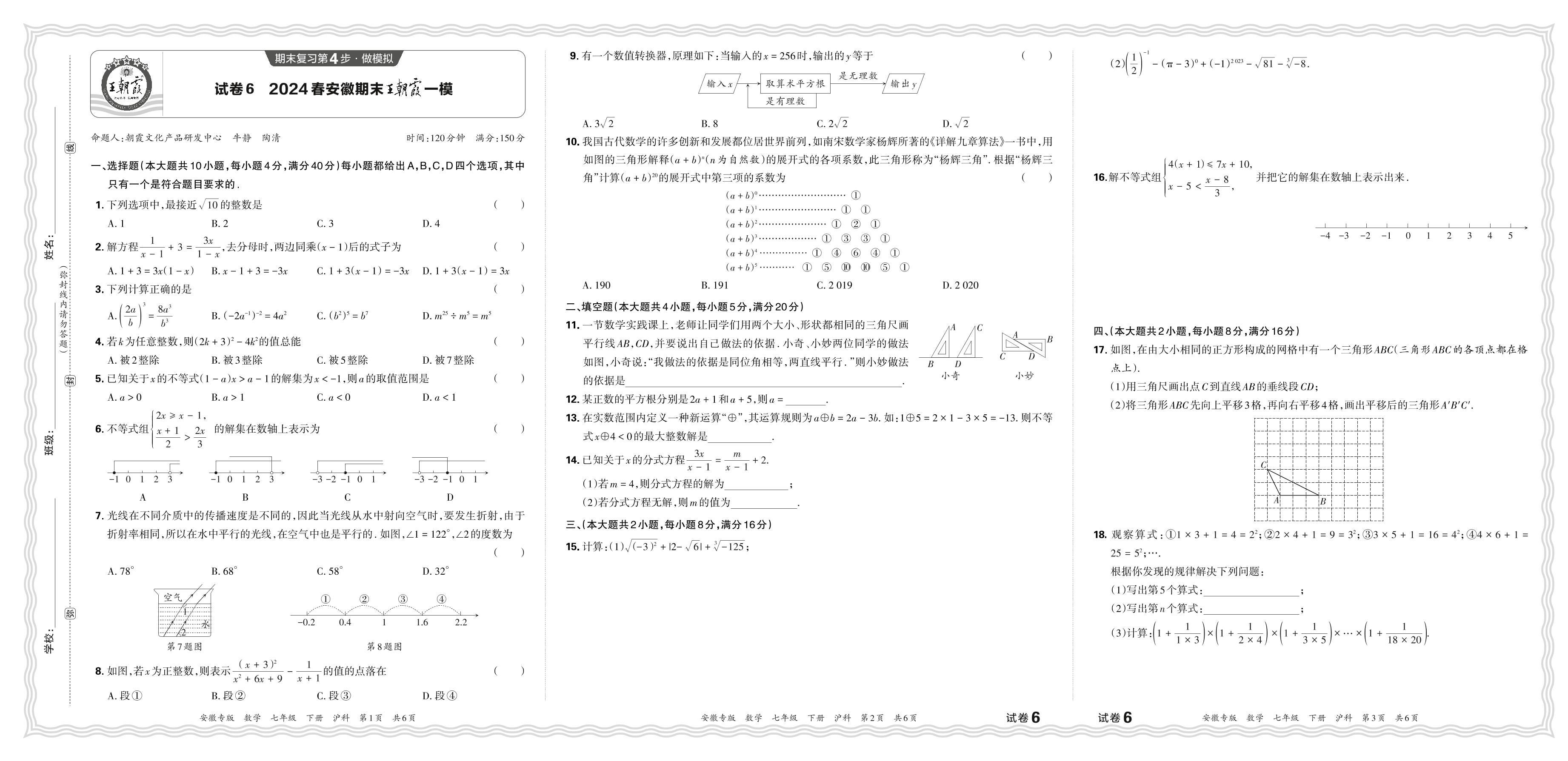 2024春下册七年级数学沪科版 安徽期末王朝霞一模