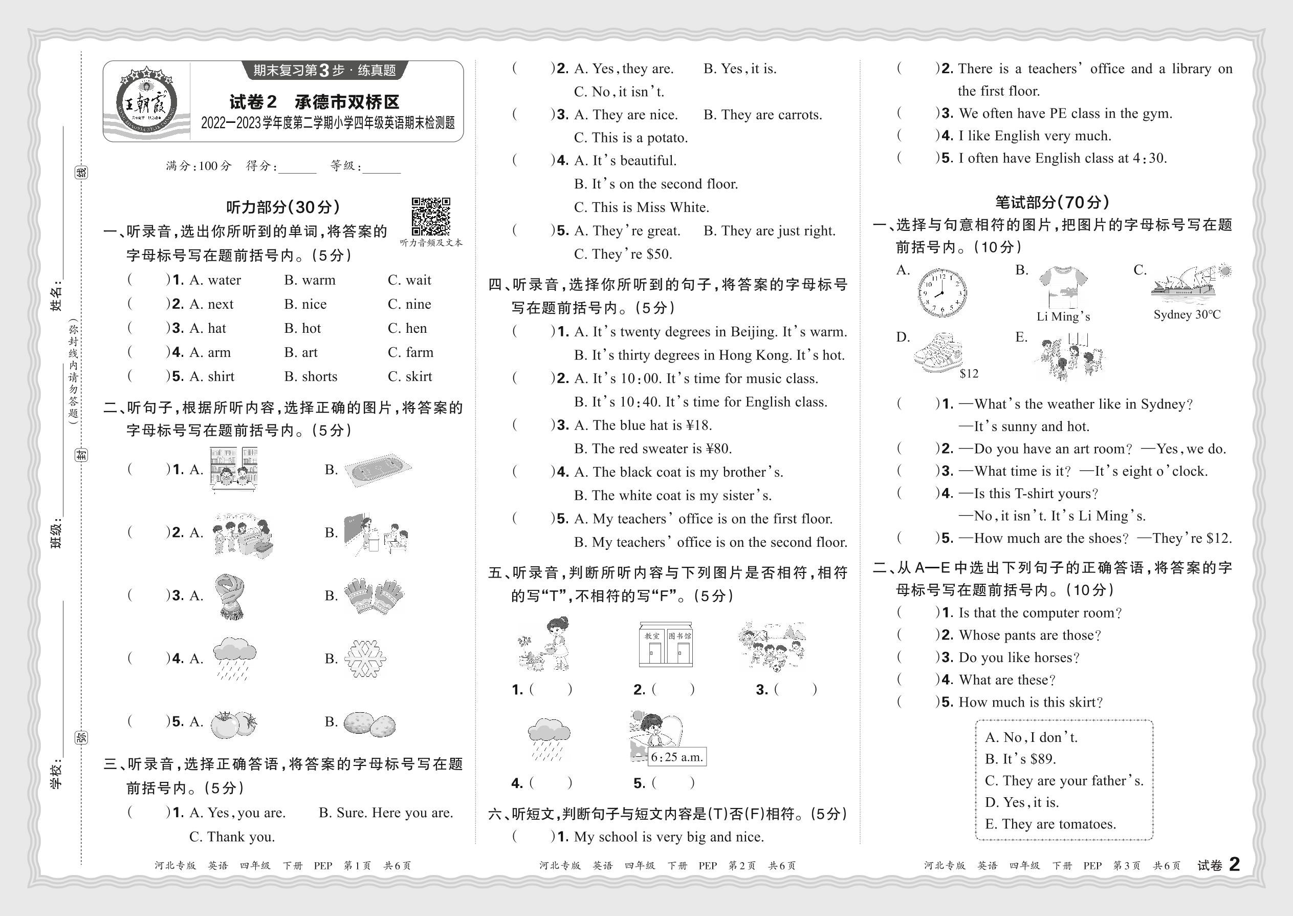 河北省承德市双桥区2022—2023学年度第二学期小学四年级英语期末检测题(人教PEP版)【2】