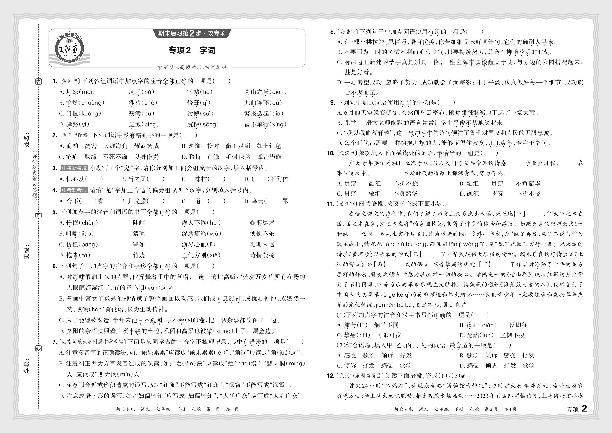 2024春下册七年级语文人教版 期末专项卷湖北版·字词【2】