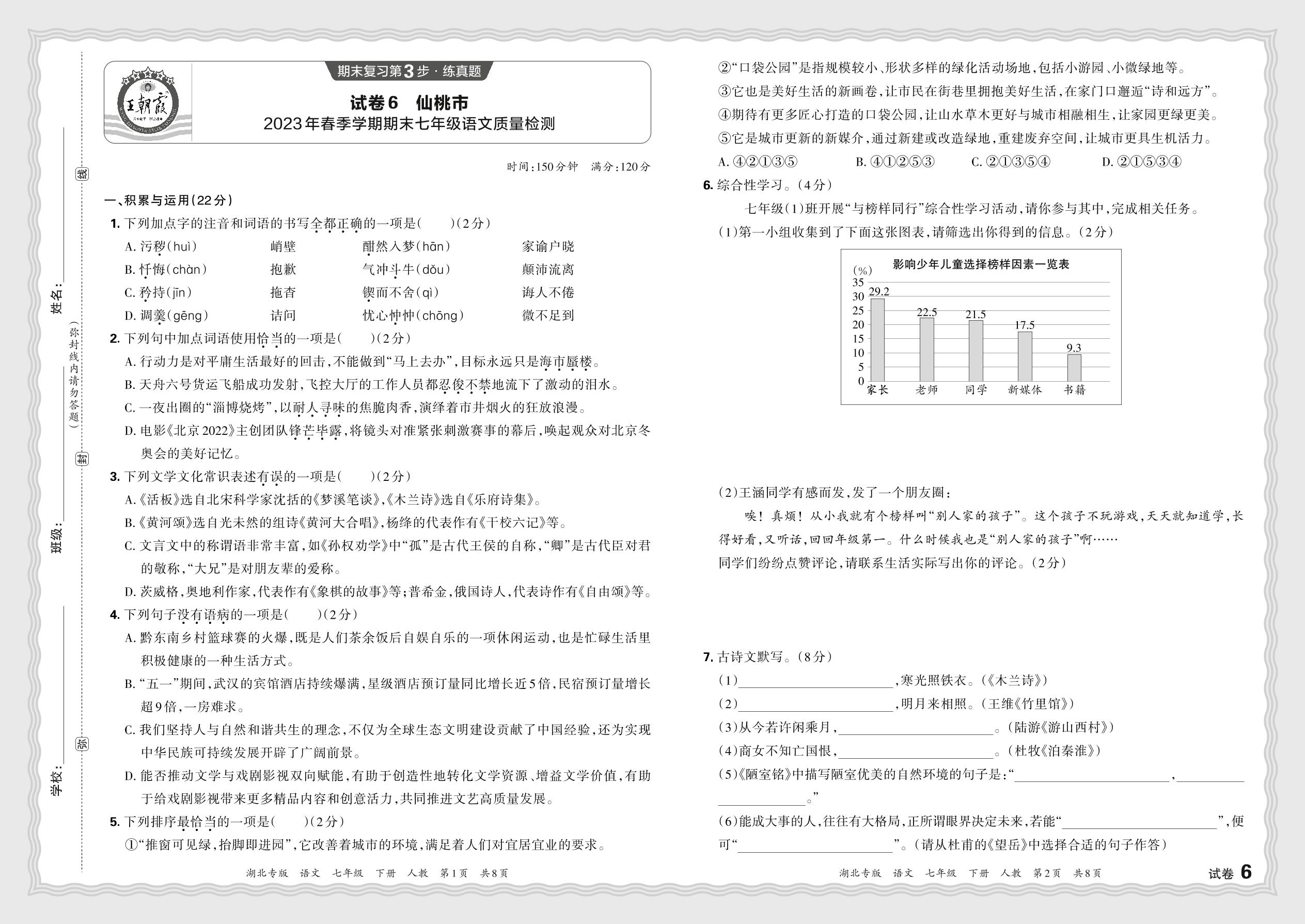 七年级语文人教版下册期末卷