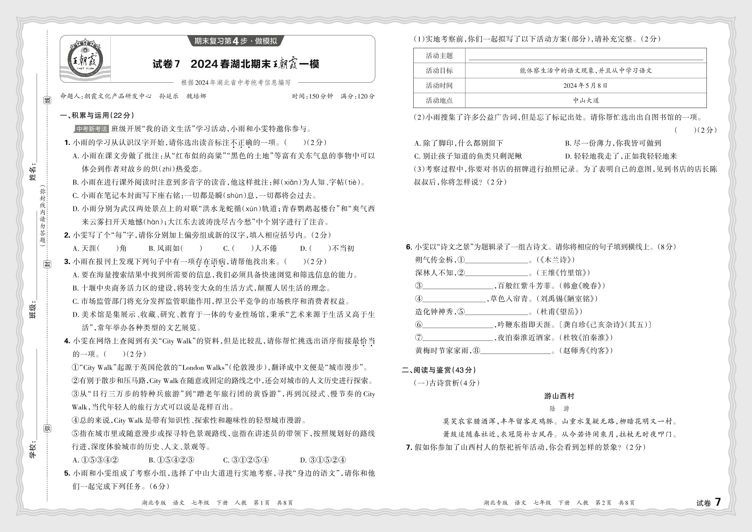 2024春下册七年级语文人教版 湖北期末王朝霞一模【7】