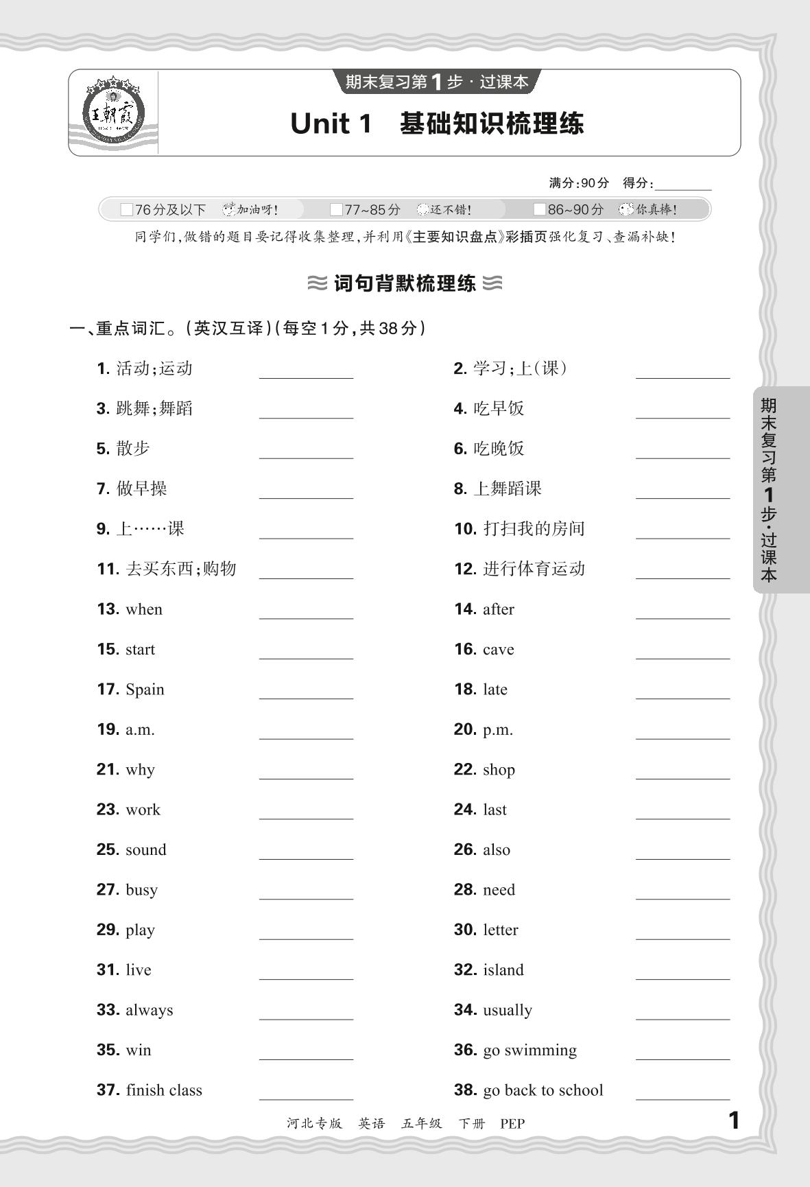 2024春下册五年级英语人教PEP版 期末过课本河北版·Unit 1 基础知识梳理练