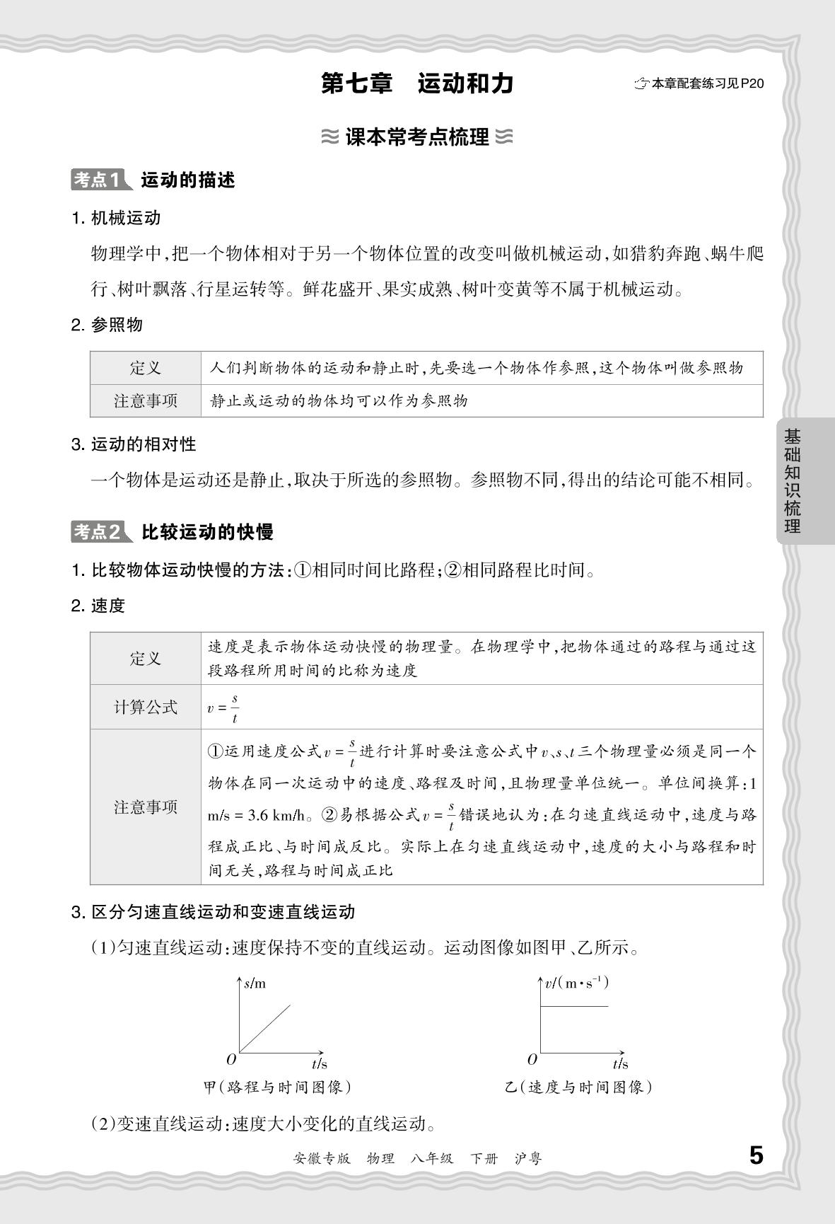 2024春下册八年级物理沪粤版 期末过课本安徽版·基础知识梳理 第七章 运动和力