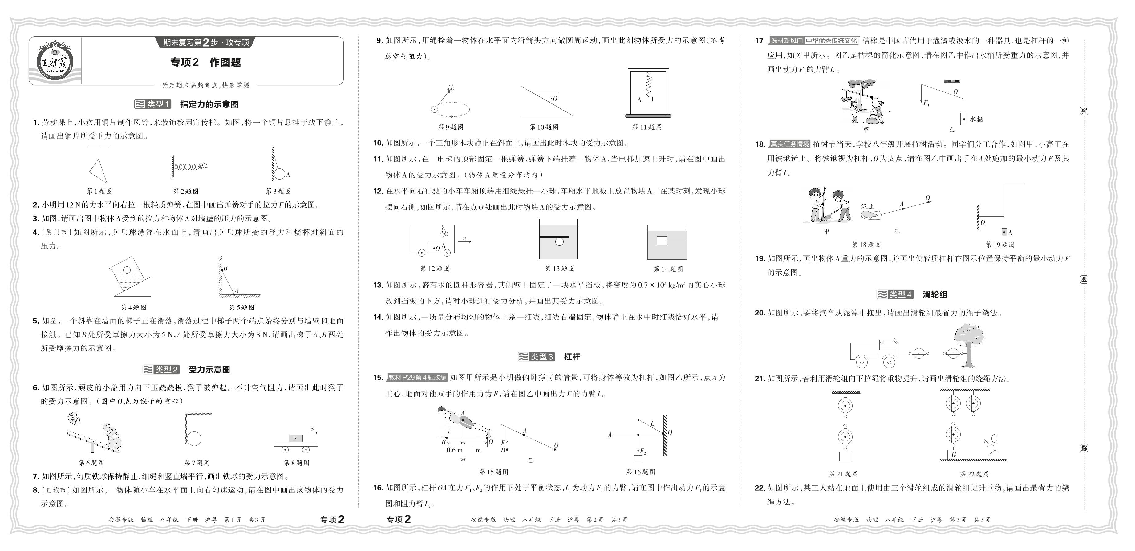 2024春下册八年级物理沪粤版 期末专项卷安徽版·作图题【2】
