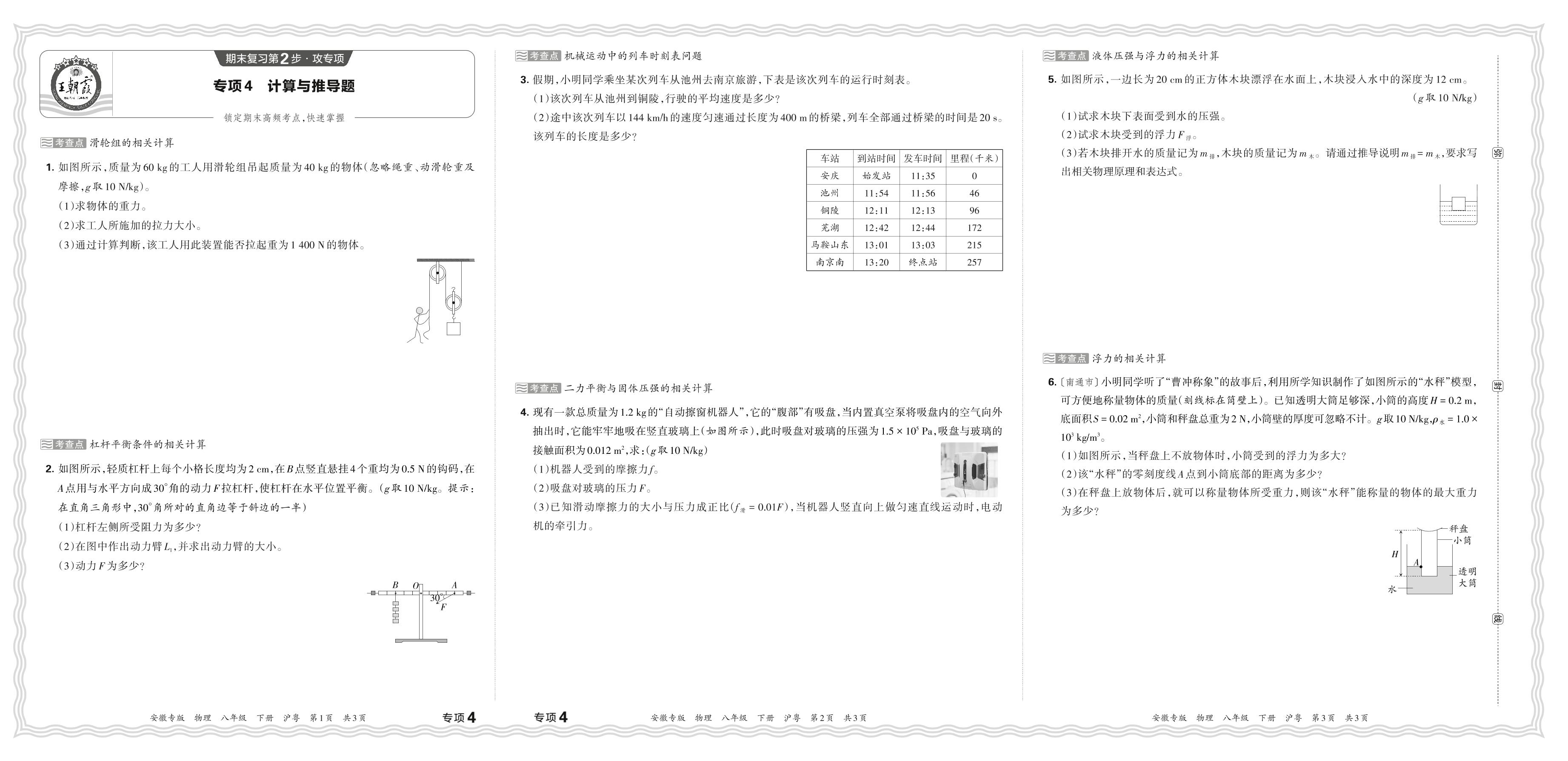 2024春下册八年级物理沪粤版 期末专项卷安徽版·计算与推导题【4】