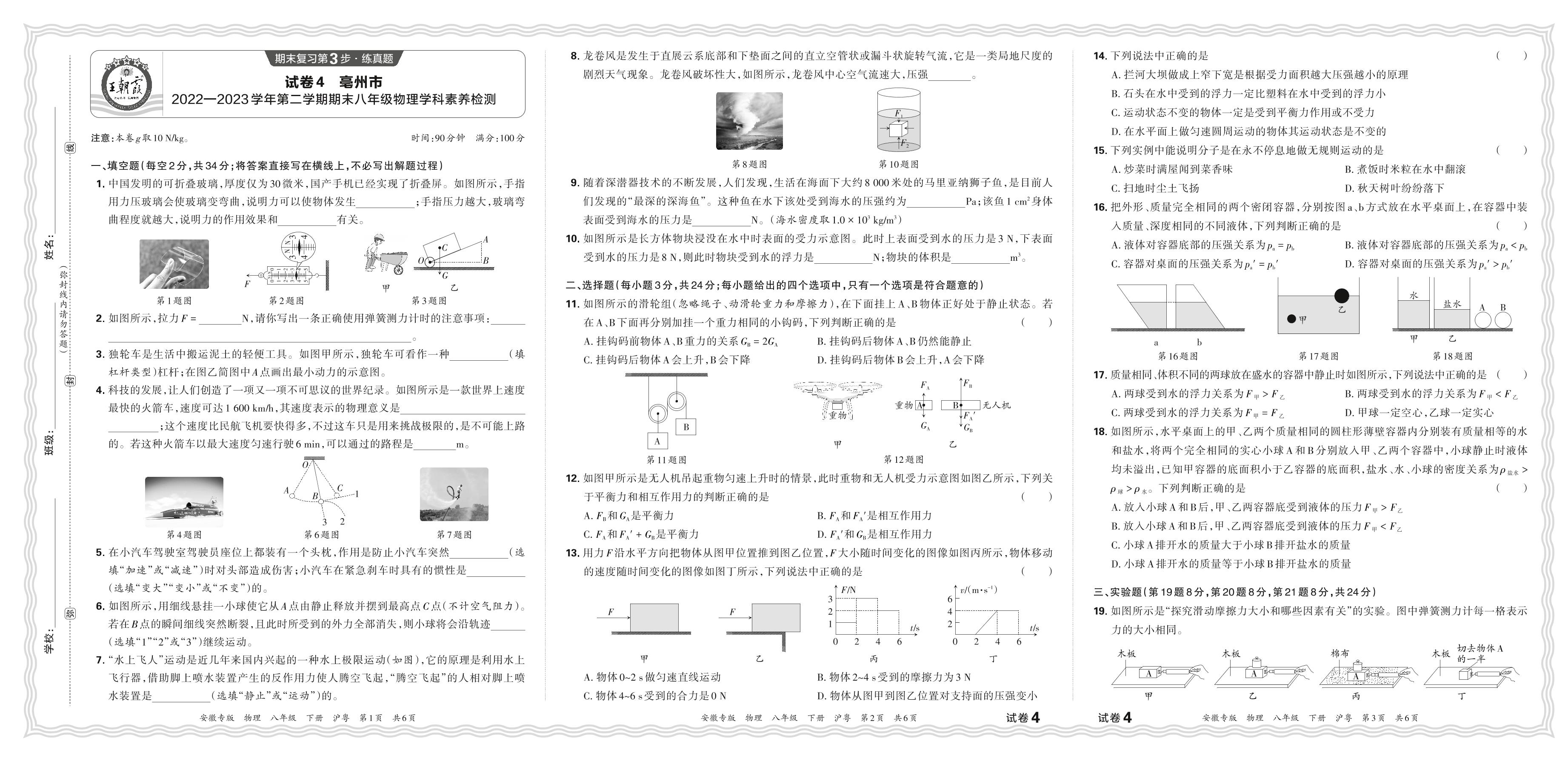 安徽省亳州市2022-2023学年第二学期期末八年级物理学科素养检测(沪粤版)【4】