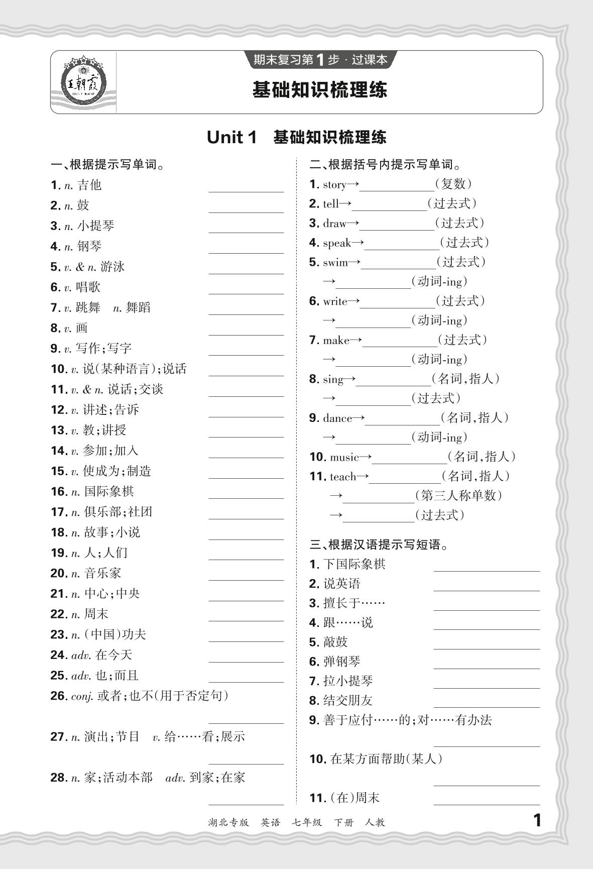 2024春下册七年级英语人教版 期末过课本湖北版·Unit 1 基础知识梳理练