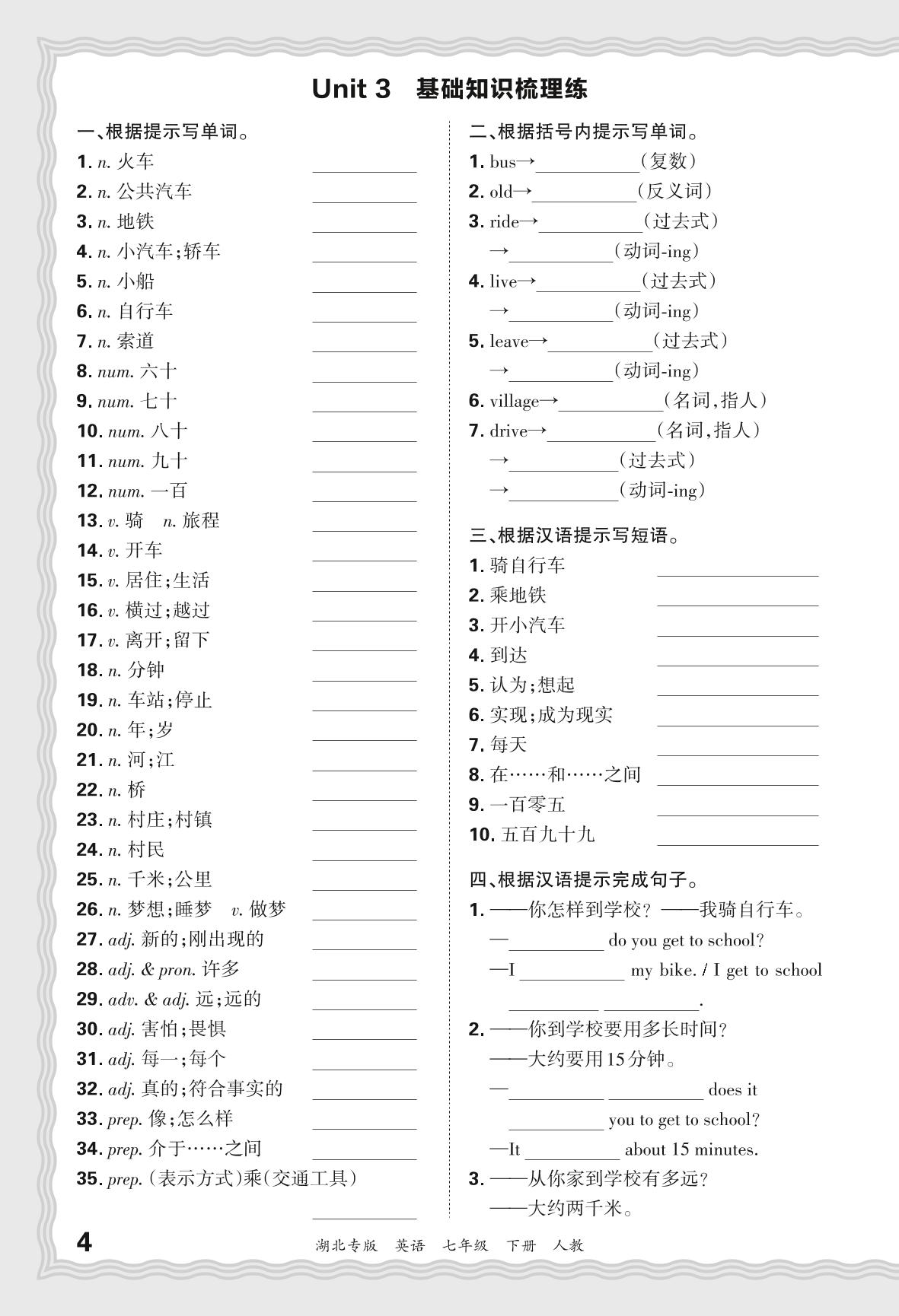 2024春下册七年级英语人教版 期末过课本湖北版·Unit 3 基础知识梳理练