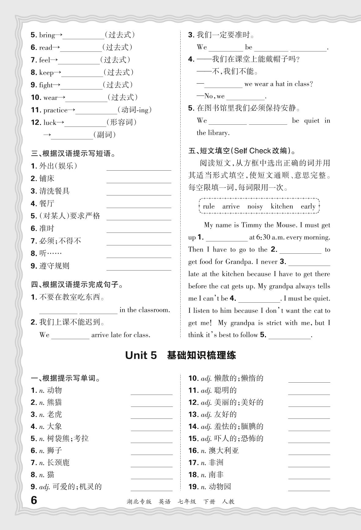 2024春下册七年级英语人教版 期末过课本湖北版·Unit 5 基础知识梳理练