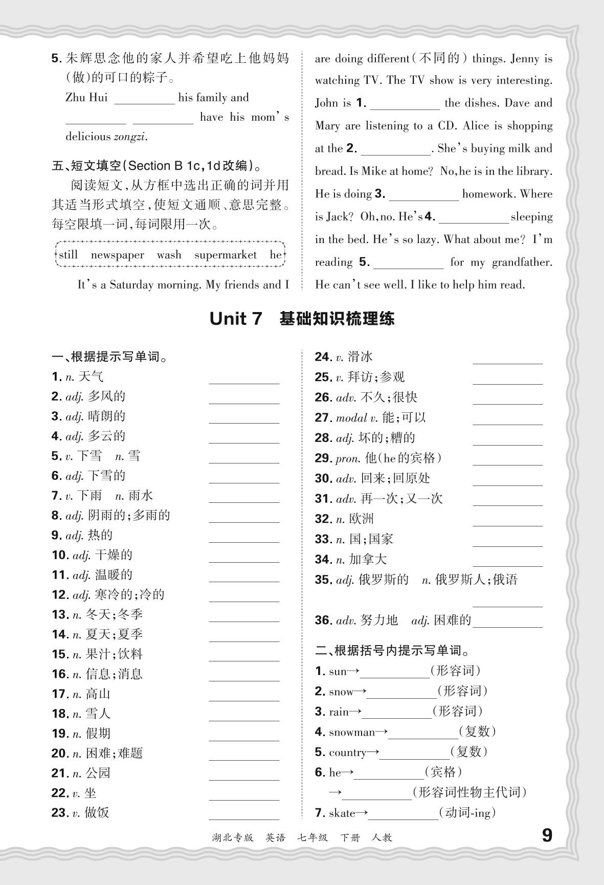 2024春下册七年级英语人教版 期末过课本湖北版·Unit 7 基础知识梳理练