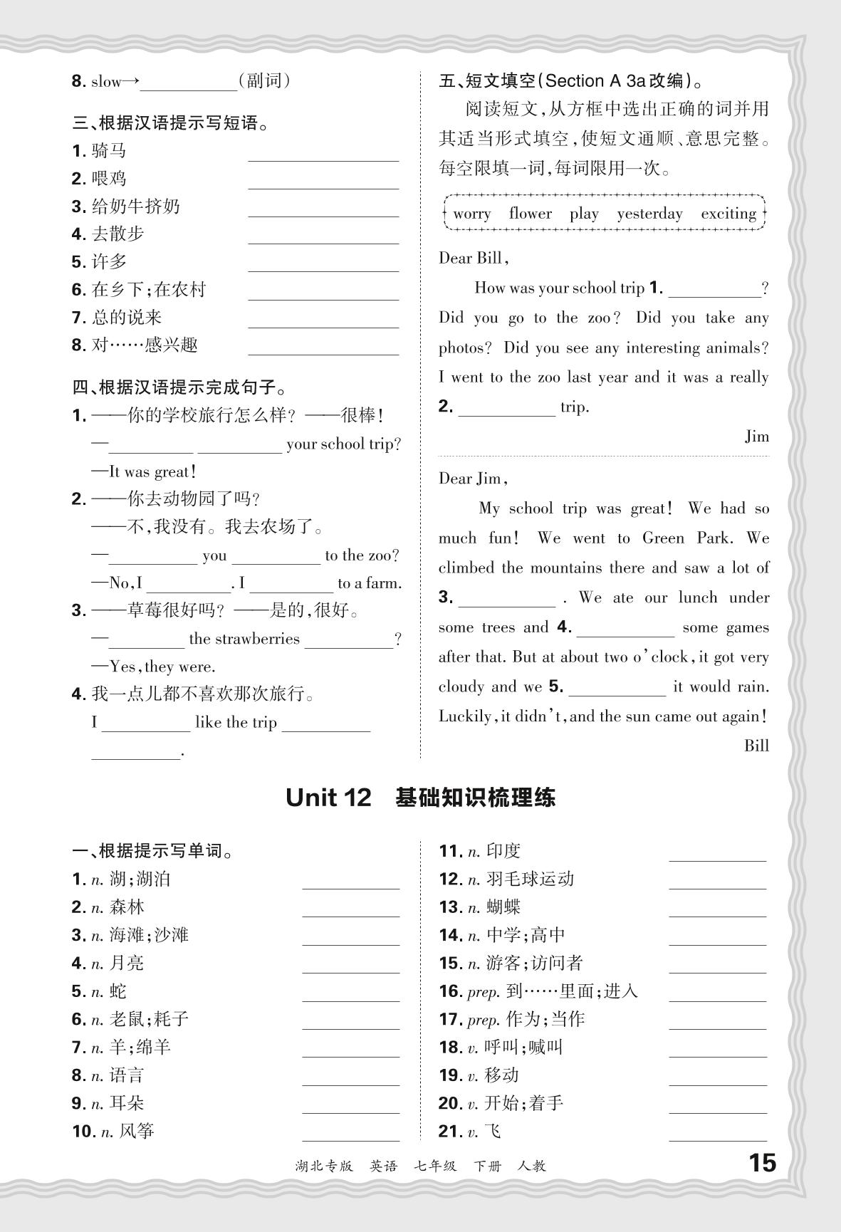 2024春下册七年级英语人教版 期末过课本湖北版·Unit 12 基础知识梳理练