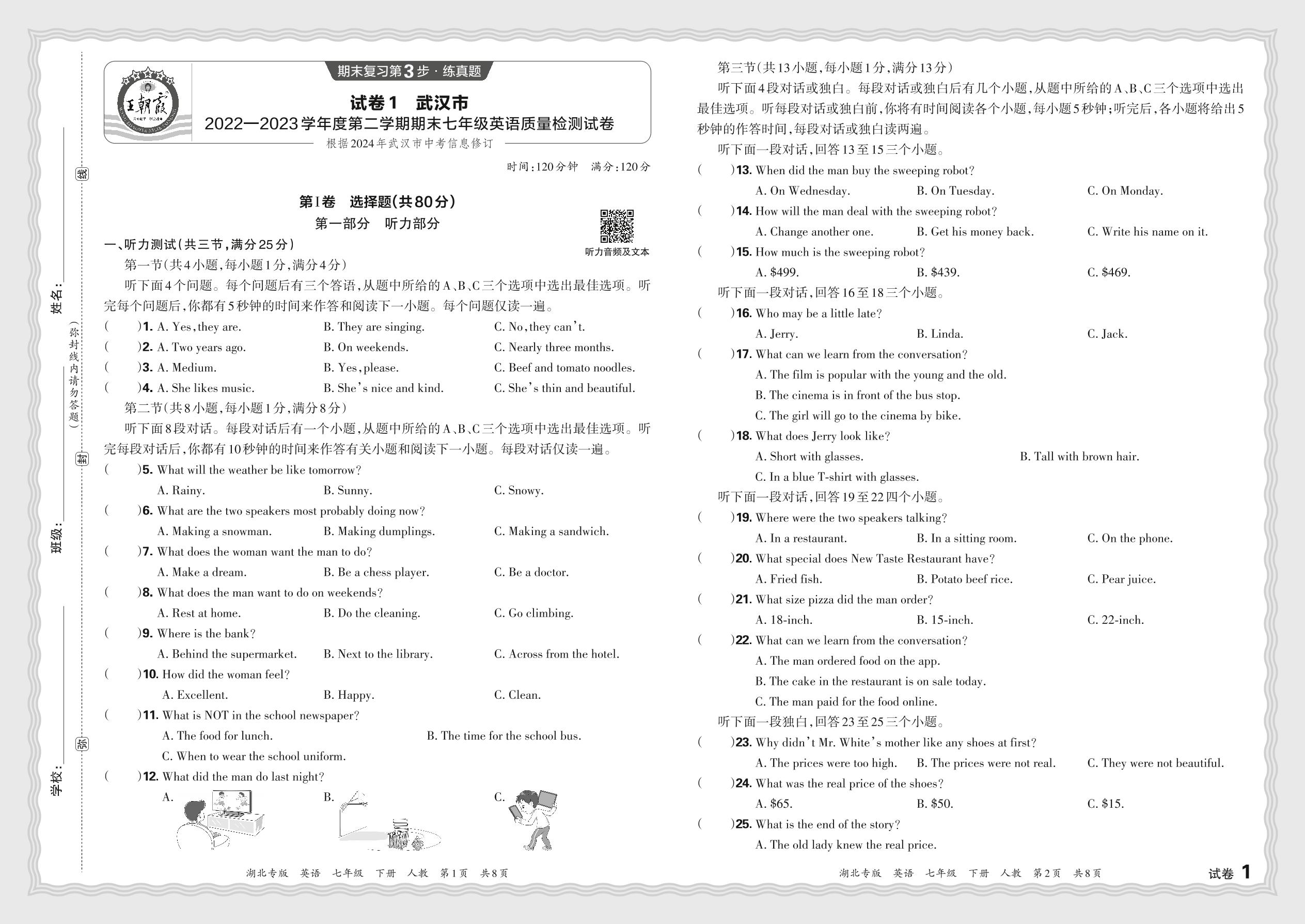 湖北省武汉市2022-2023学年度第二学期期末七年级英语质量检测试卷(人教版)【1】