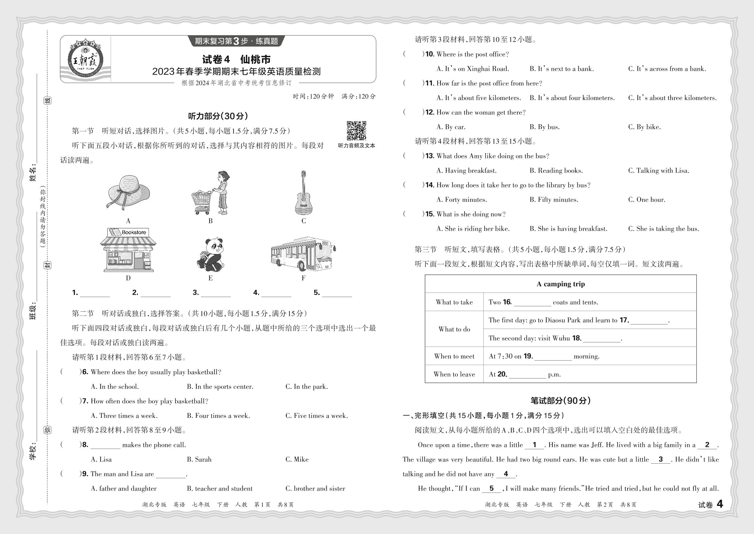 湖北省仙桃市2023年春季学期期末七年级英语质量检测(人教版)【4】