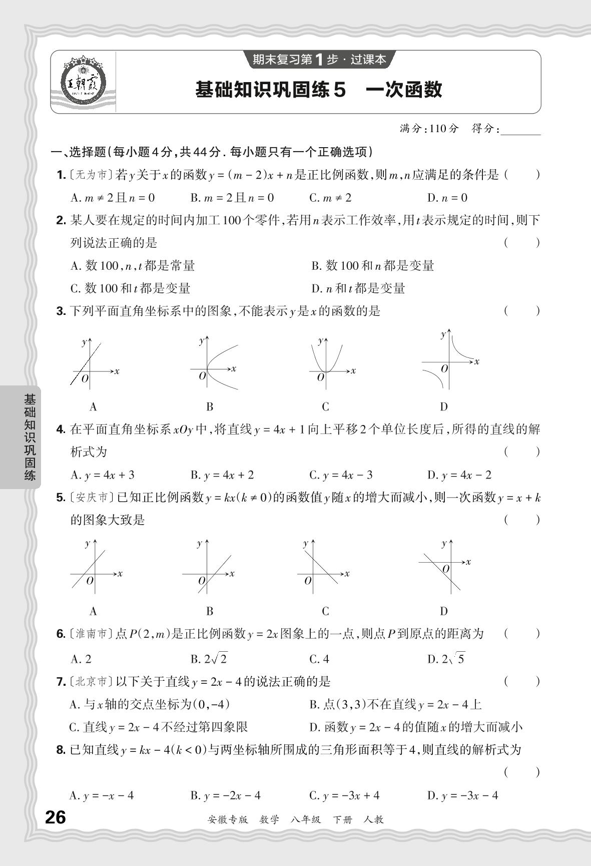2024春下册八年级数学人教版 期末过课本安徽版·基础知识巩固练 一次函数【5】