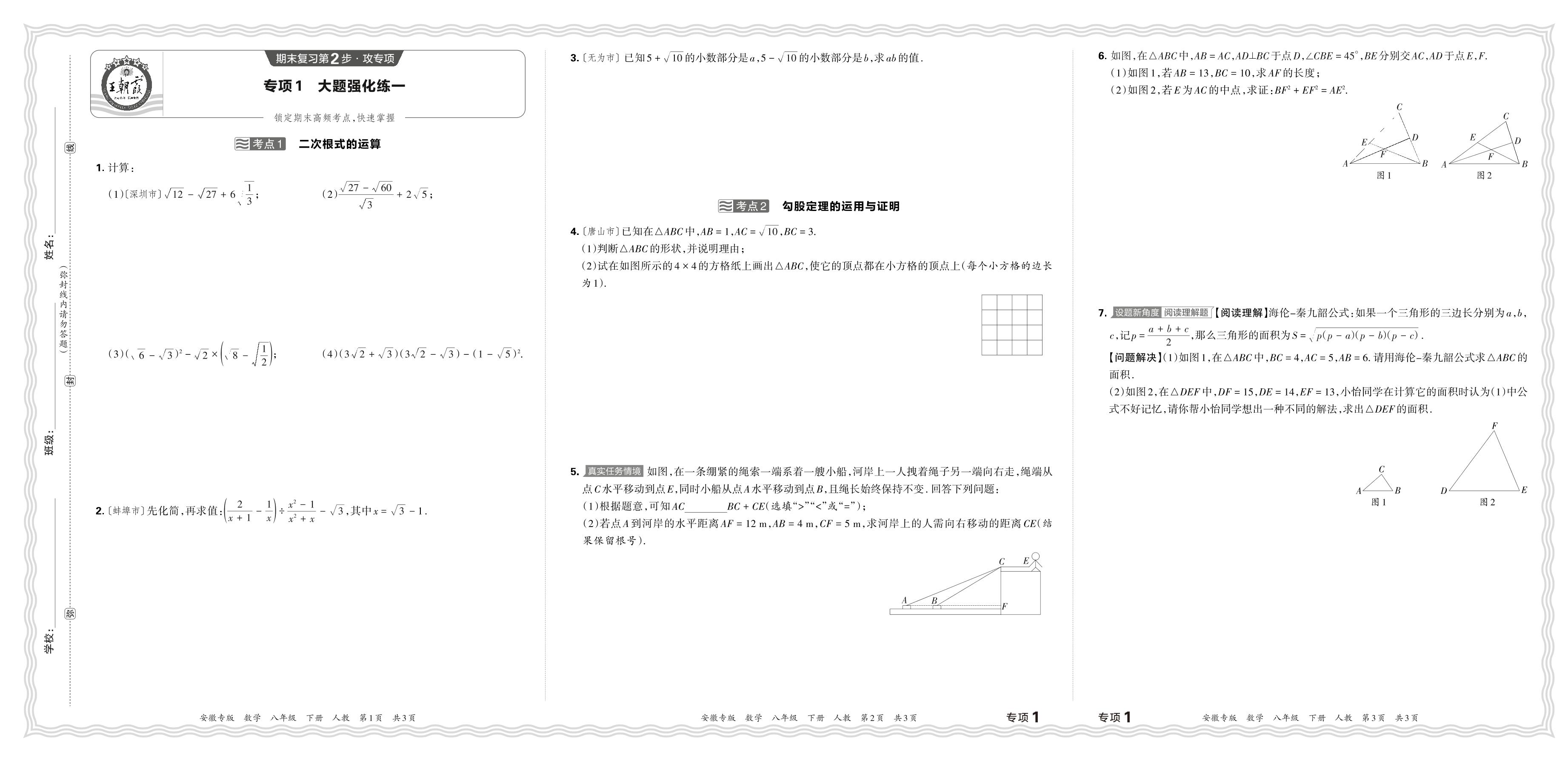 2024春下册八年级数学人教版 期末专项卷安徽版·大题强化练一