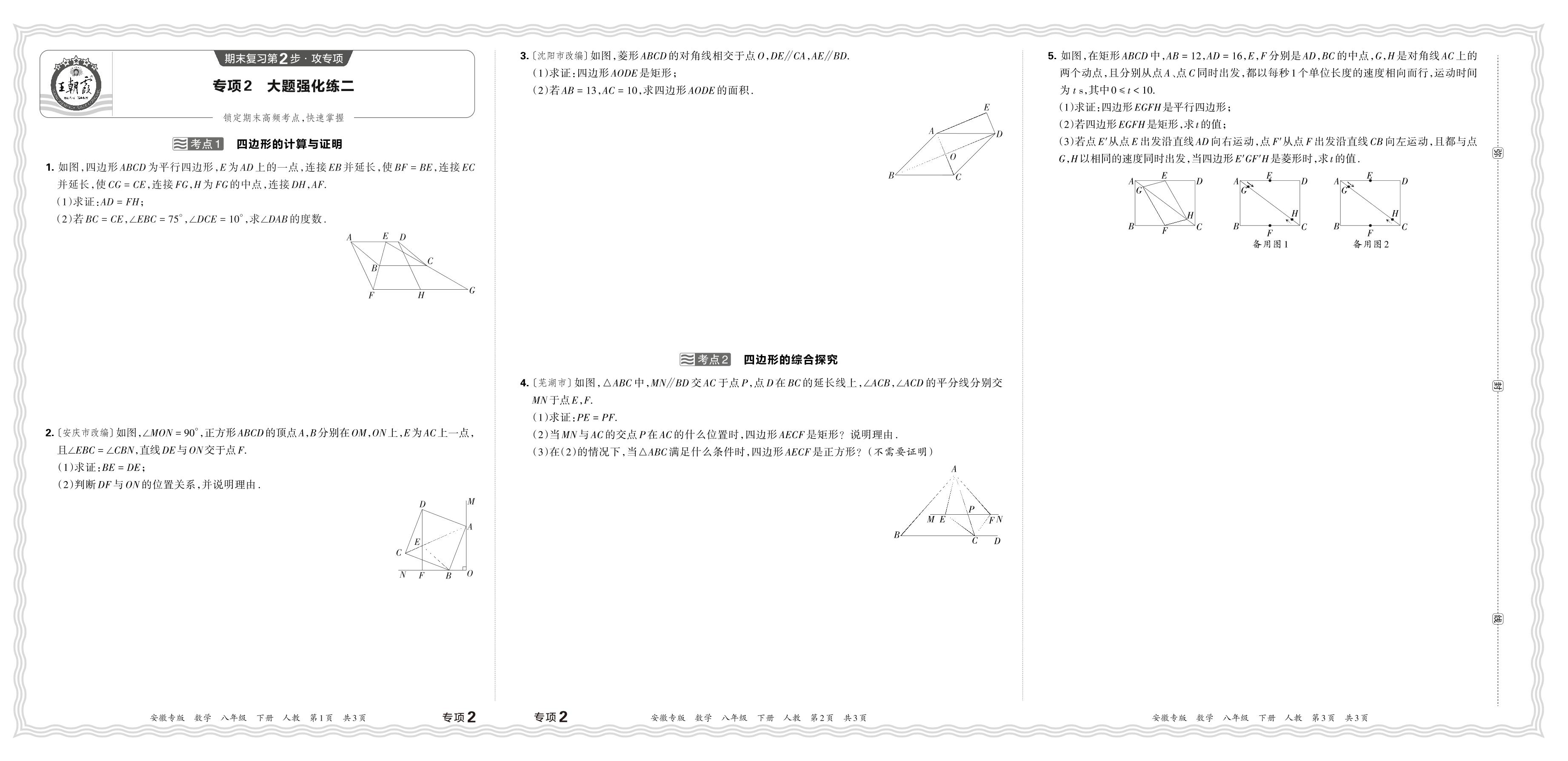 2024春下册八年级数学人教版 期末专项卷安徽版·大题强化练二