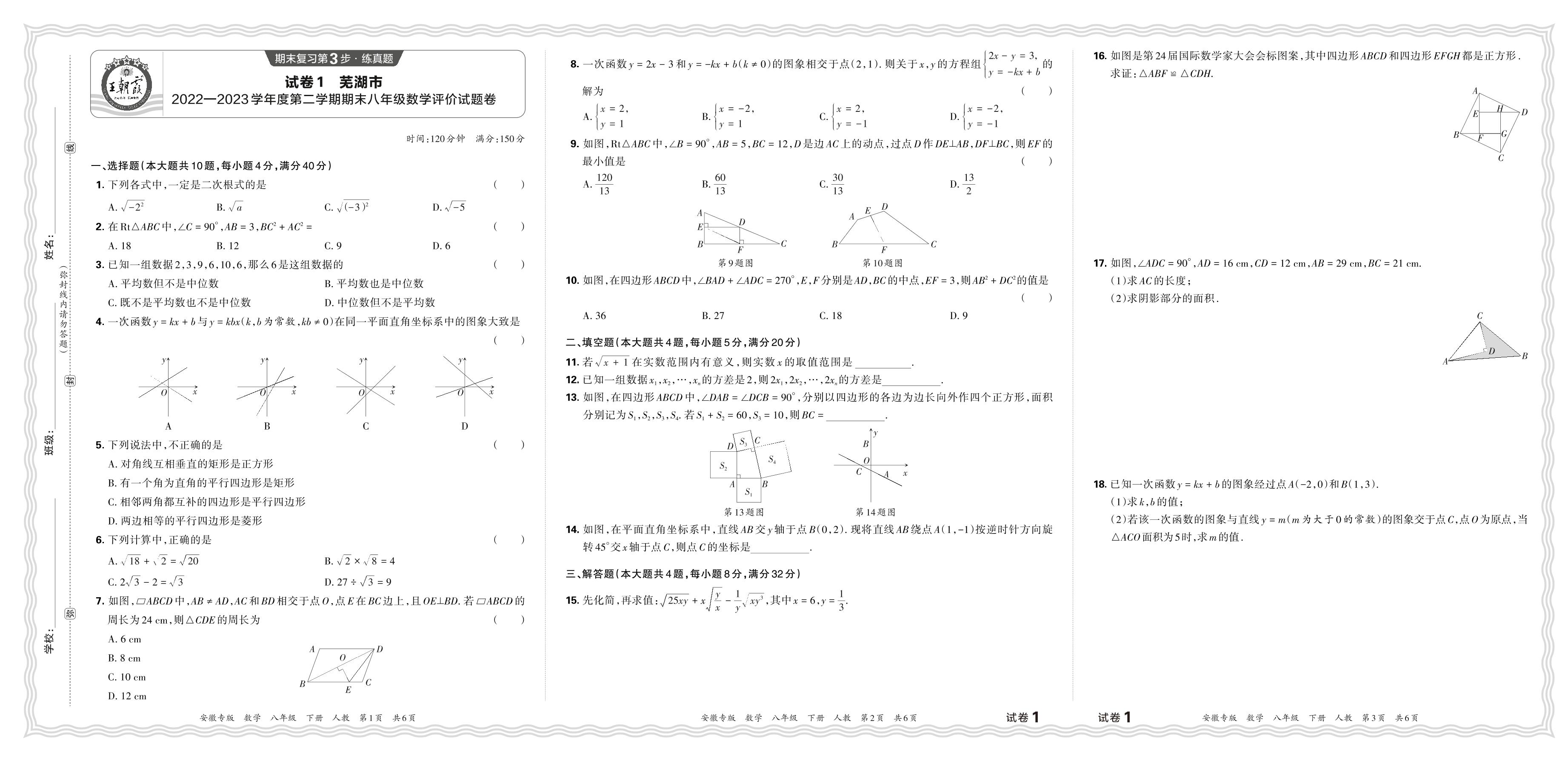 安徽省芜湖市2022-2023学年度第二学期期末八年级数学评价试题卷(人教版)【1】