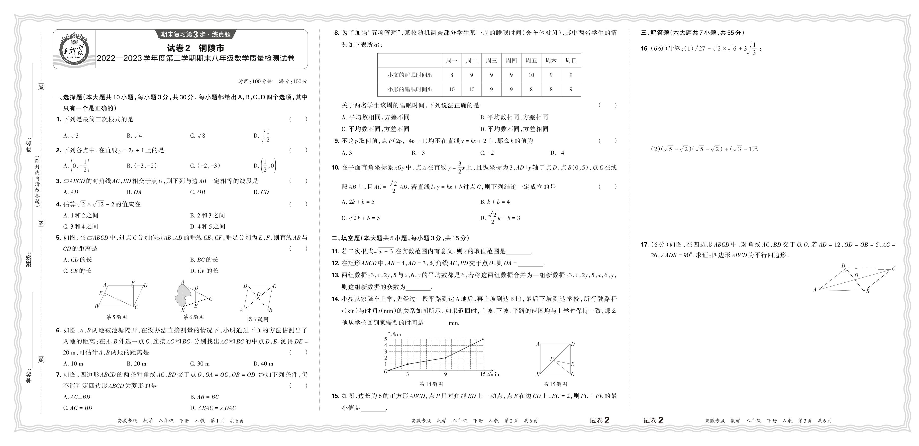 安徽省铜陵市2022-2023学年度第二学期期末八年级数学质量检测试卷(人教版)【2】