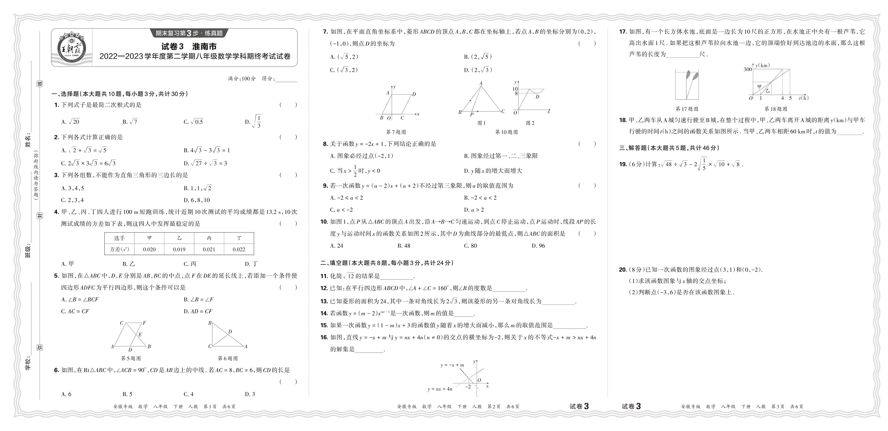安徽省淮南市2022-2023学年度第二学期八年级数学学科期终考试试卷(人教版)【3】