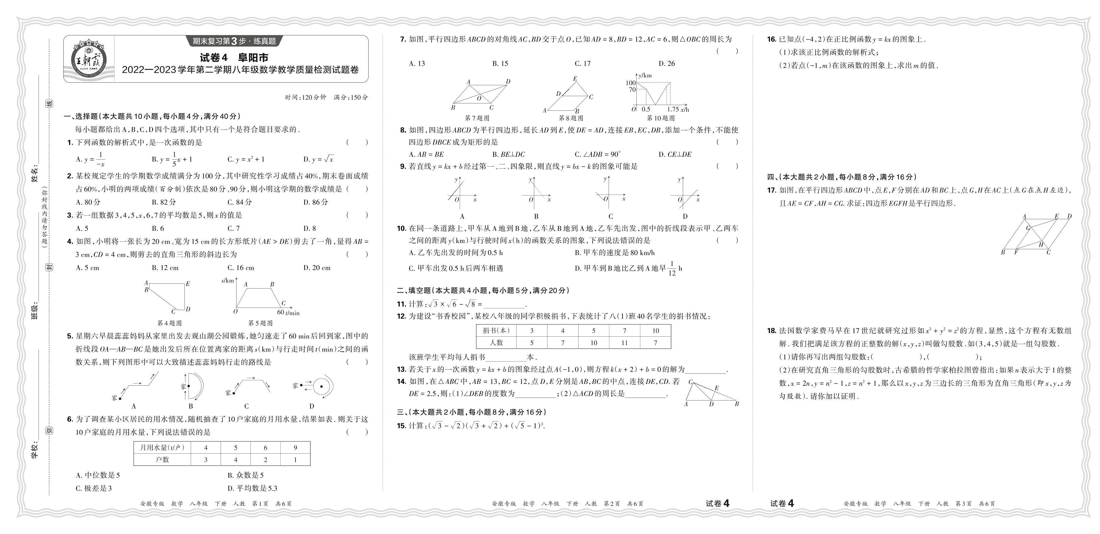 安徽省阜阳市2022-2023学年第二学期期末八年级数学教学质量检测试题卷(人教版)【4】