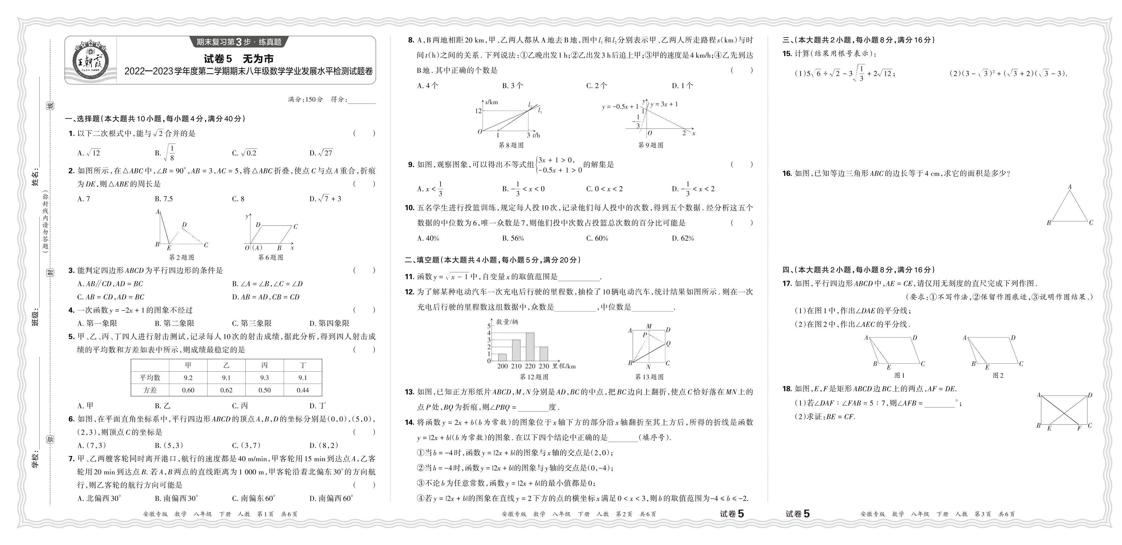 安徽省无为市2022-2023学年度第二学期期末八年级数学学业发展水平检测试题卷(人教版)【5】