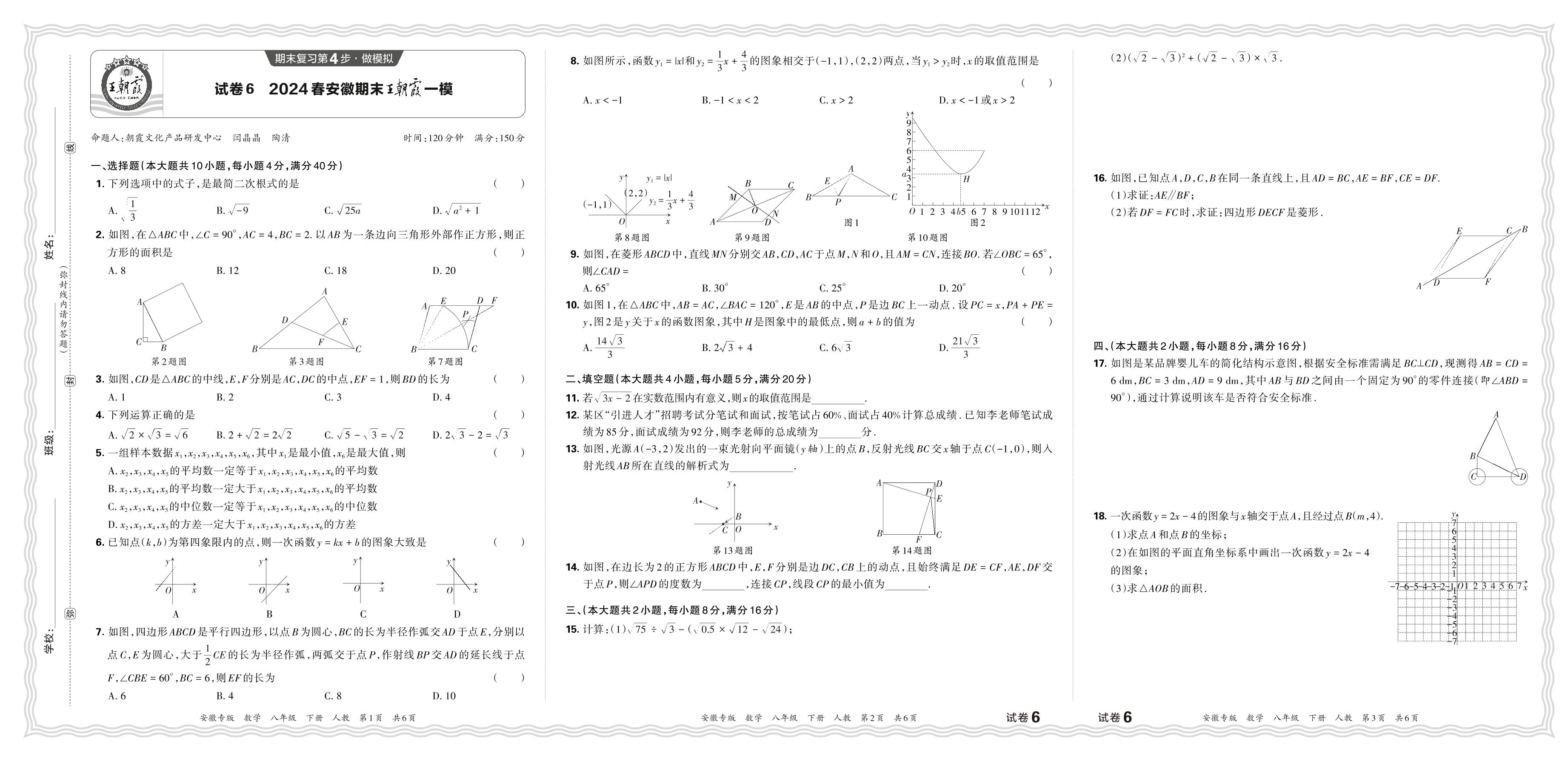 2024春下册八年级数学人教版 安徽期末王朝霞一模