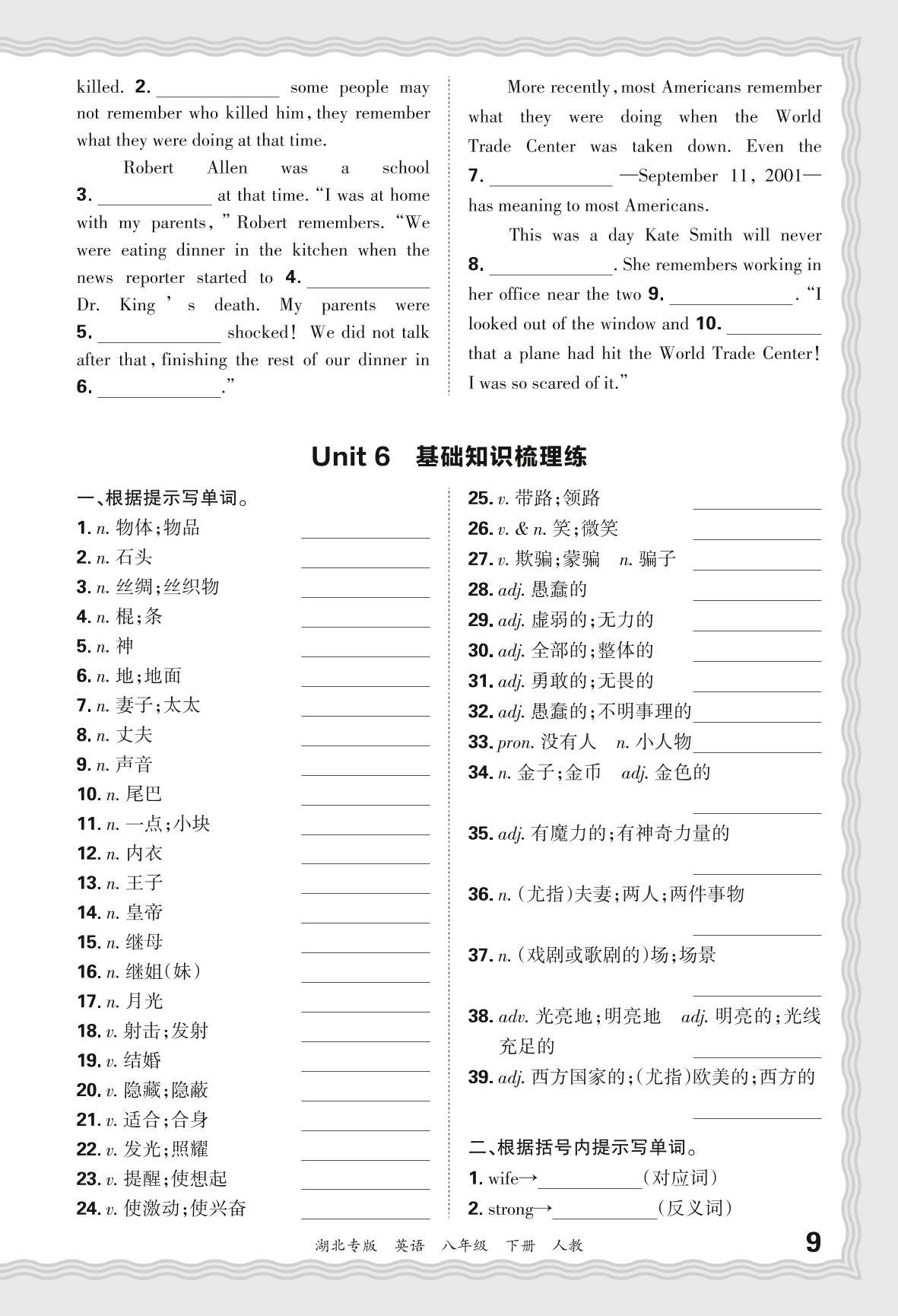 2024春下册八年级英语人教版 期末过课本湖北版·Unit 6 基础知识梳理练