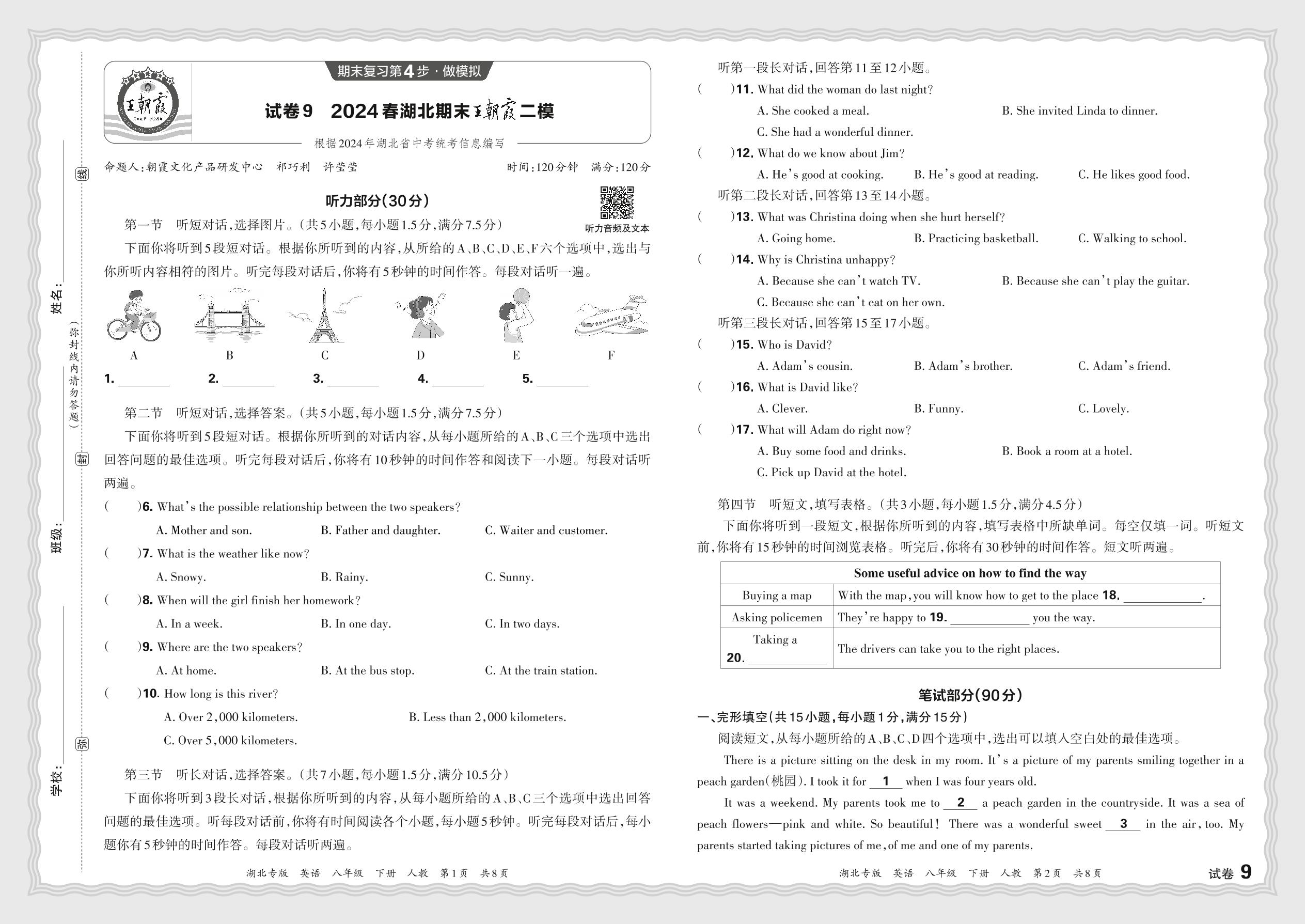 2024春下册八年级英语人教版 湖北期末王朝霞二模【9】