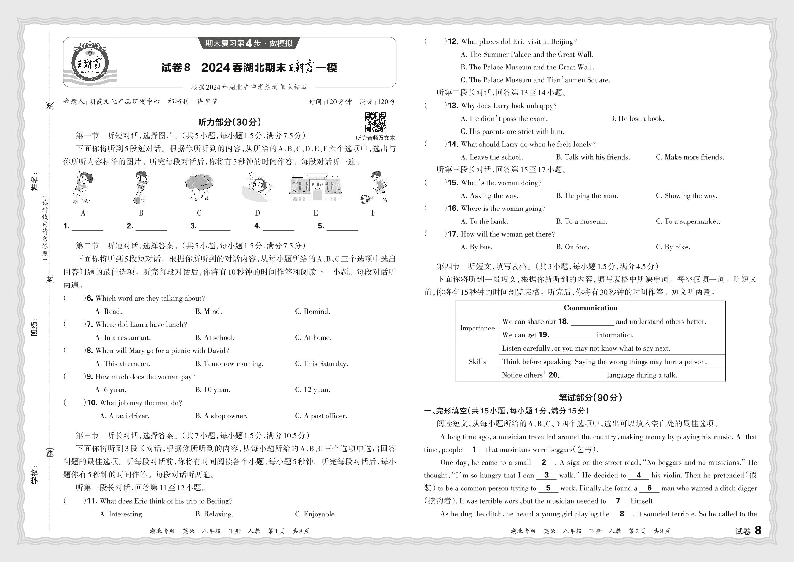 2024春下册八年级英语人教版 湖北期末王朝霞一模【8】