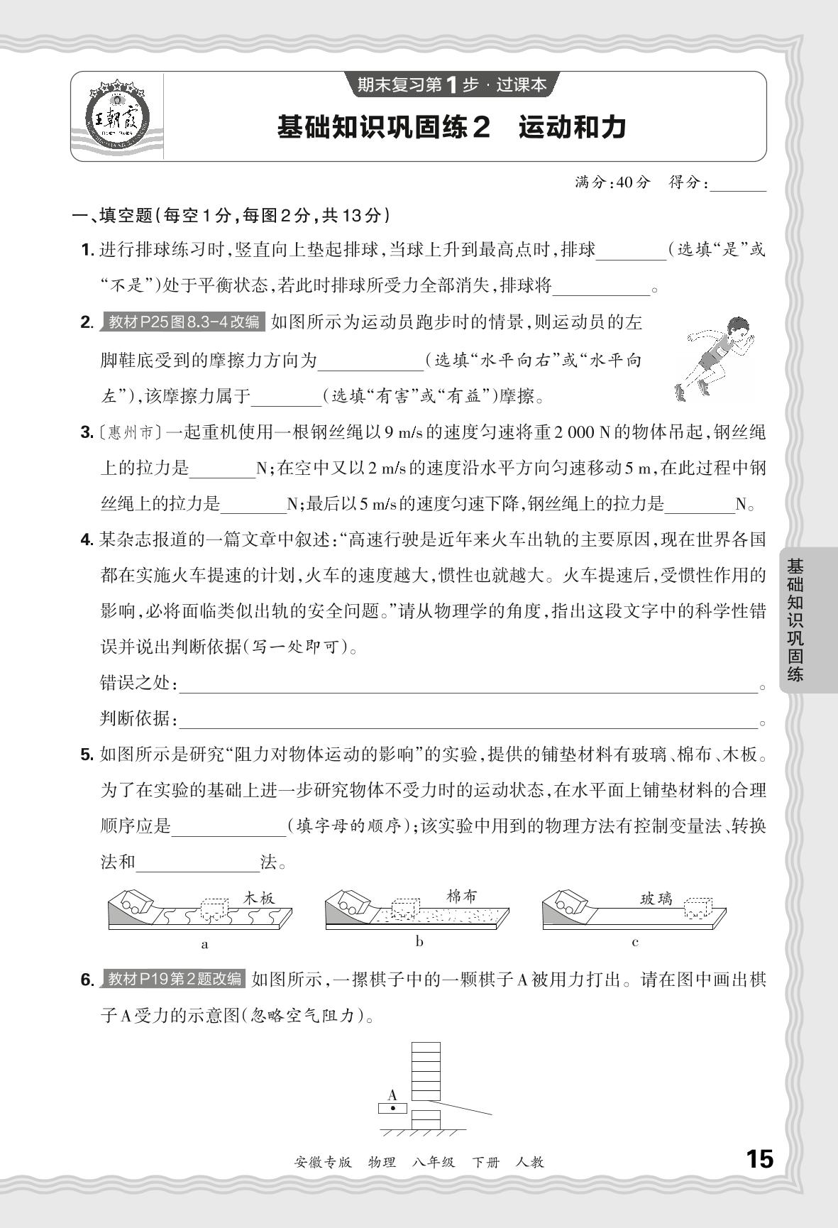 2024春下册八年级物理人教版 期末过课本安徽版·基础知识巩固练 运动和力【2】
