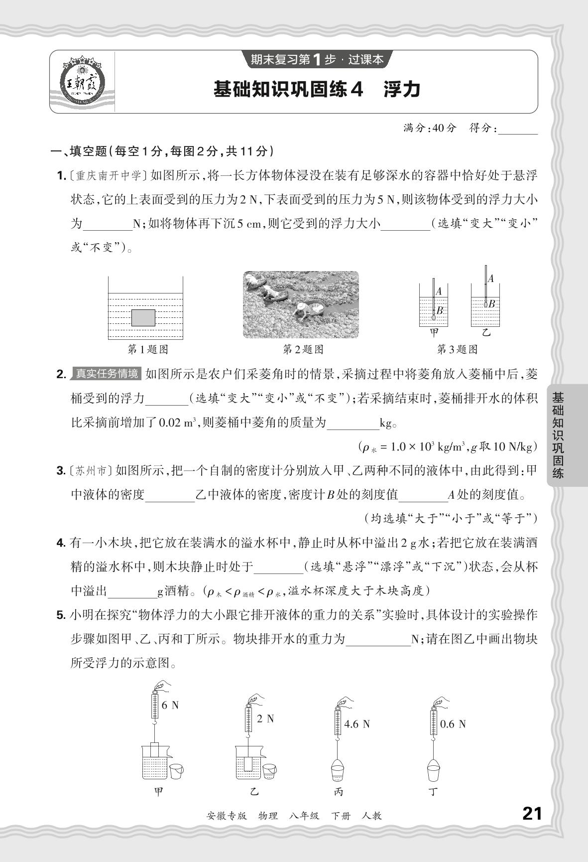 2024春下册八年级物理人教版 期末过课本安徽版·基础知识巩固练 浮力【4】