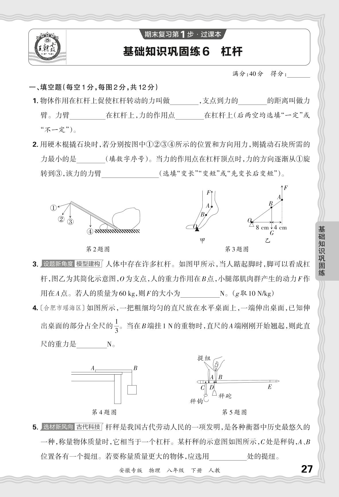 2024春下册八年级物理人教版 期末过课本安徽版·基础知识巩固练 杠杆【6】
