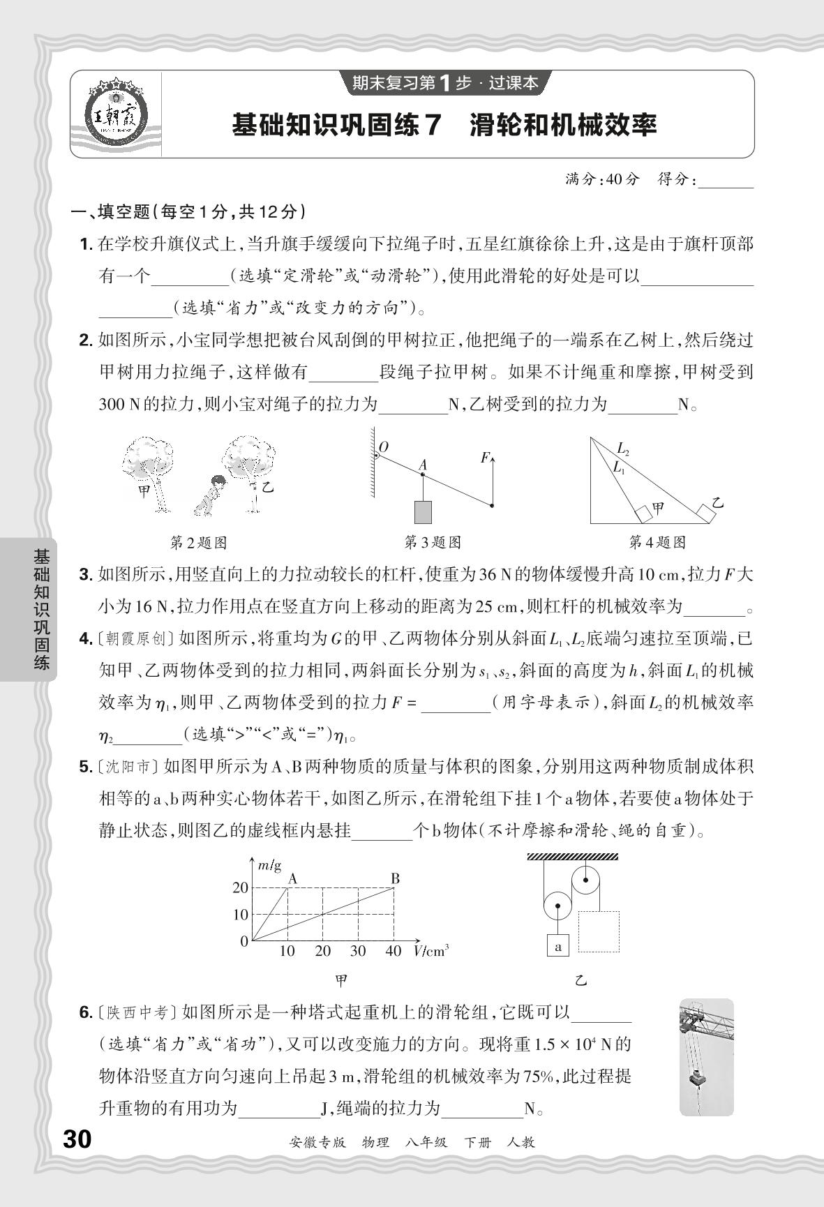2024春下册八年级物理人教版 期末过课本安徽版·基础知识巩固练 滑轮和机械效率【7】