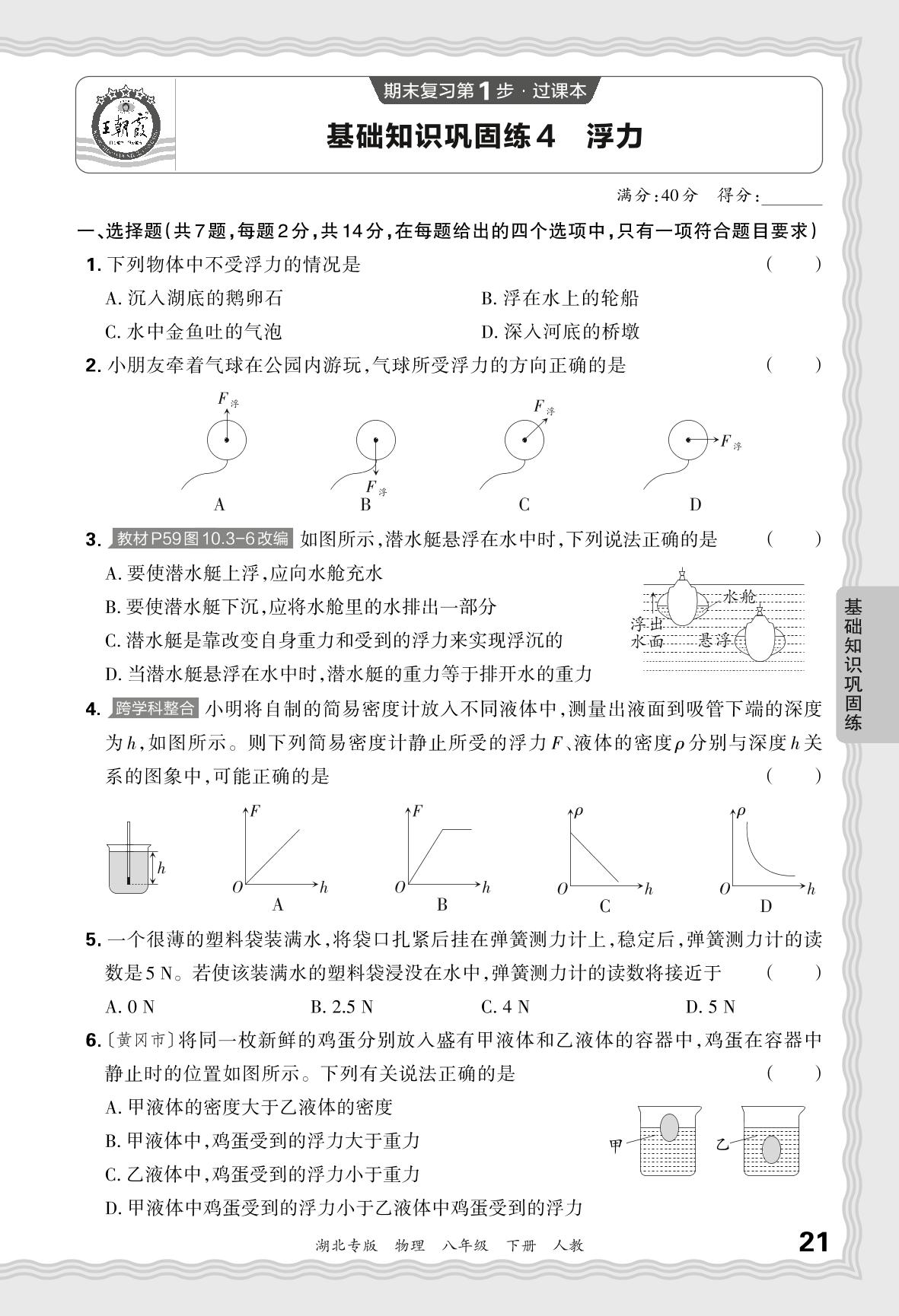 2024春下册八年级物理人教版 期末过课本湖北版·基础知识巩固练 浮力【4】