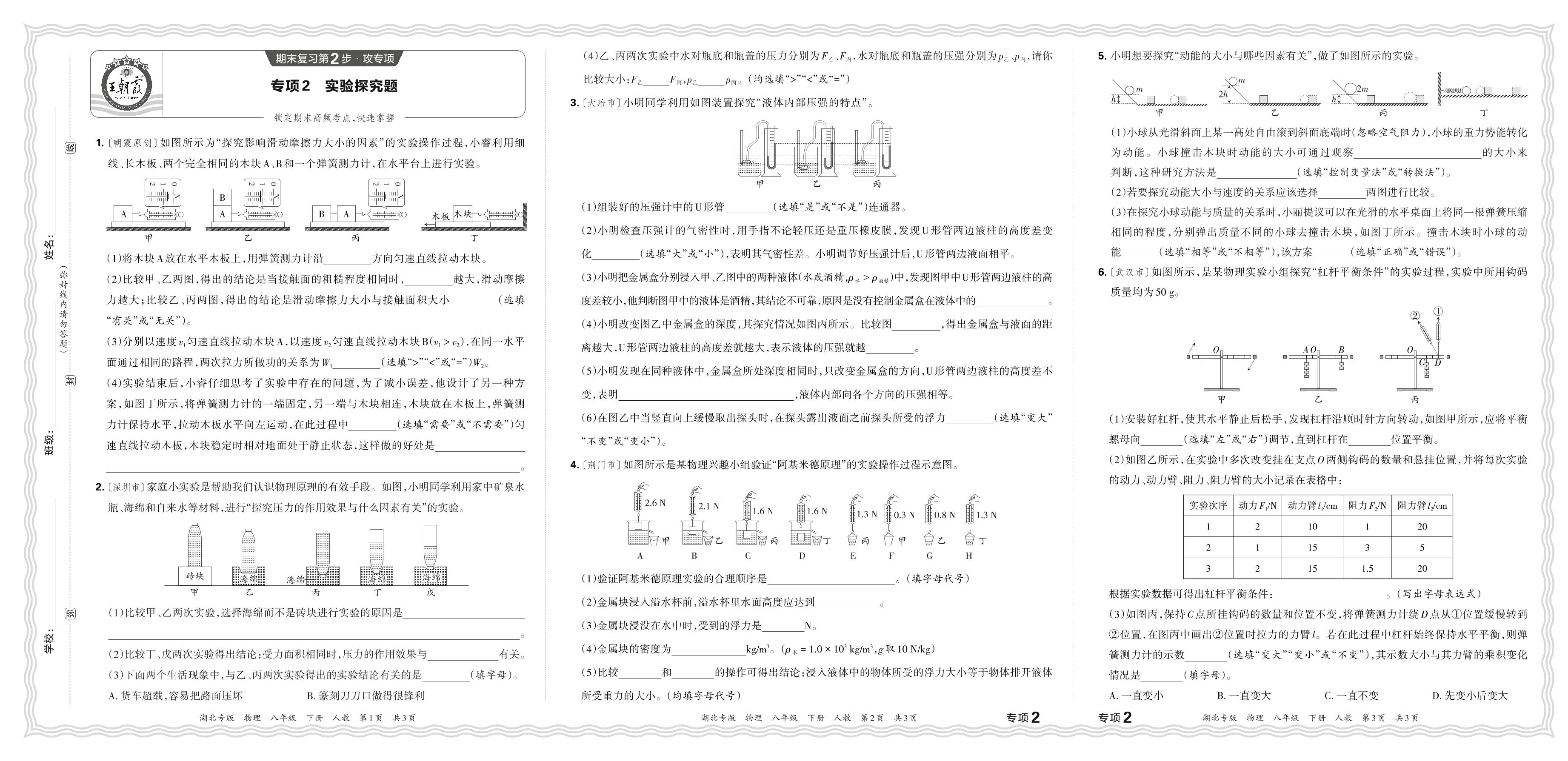 2024春下册八年级物理人教版 期末专项卷湖北版·实验研究题【2】