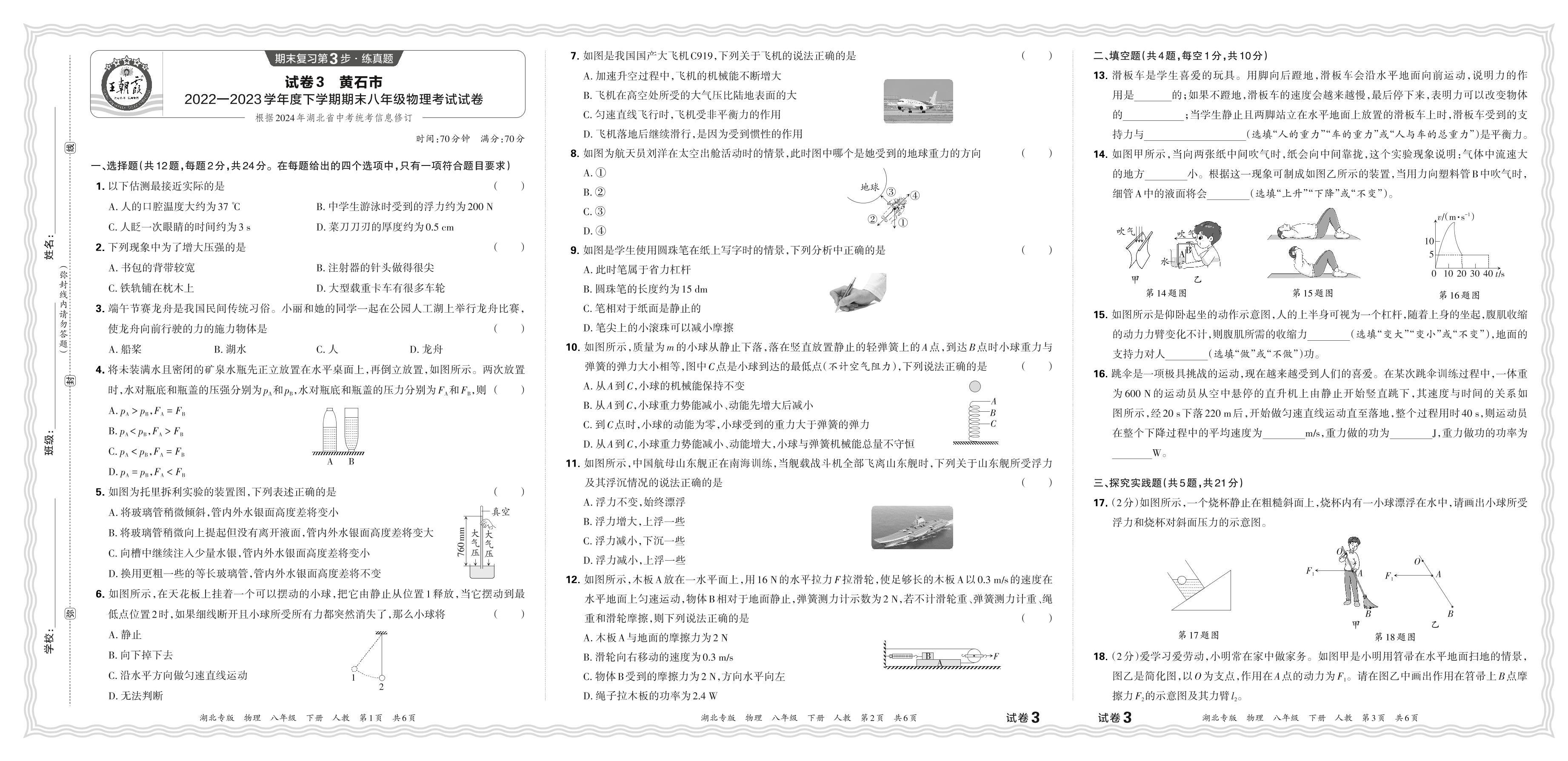 湖北省黄石市2022-2023学年度下学期期末八年级物理考试试卷(人教版)【3】