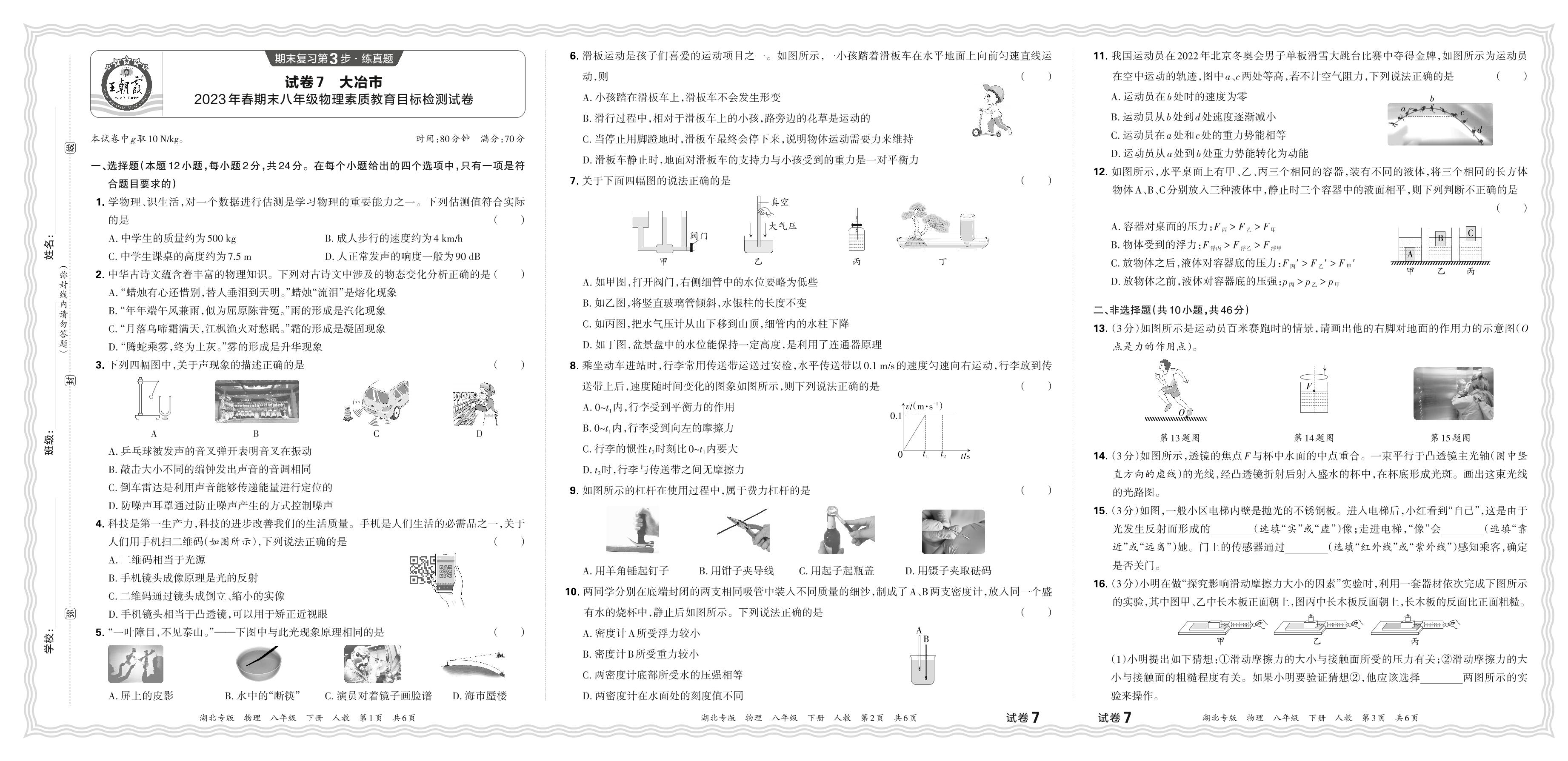 八年级物理人教版下册期末卷
