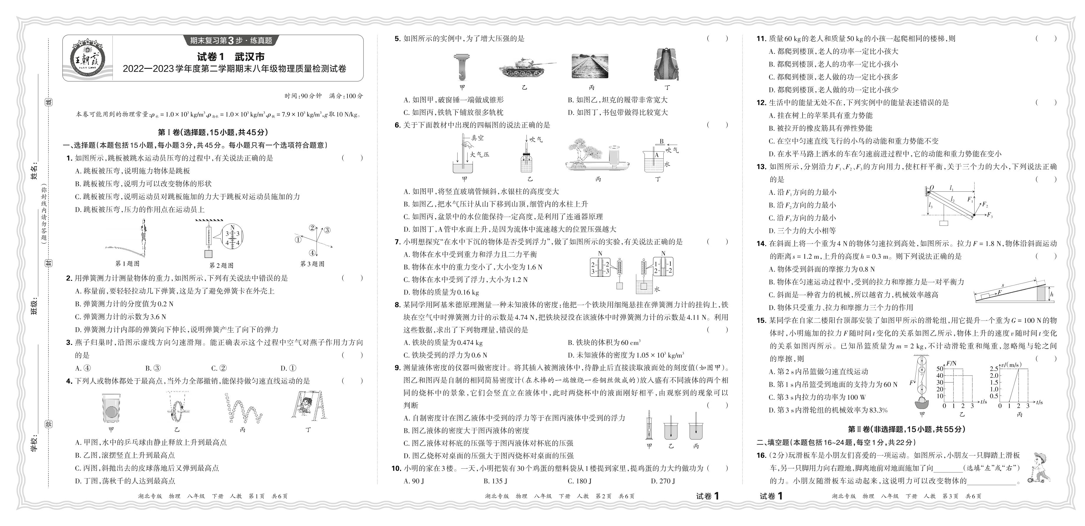 湖北省武汉市2022-2023学年度第二学期期末八年级物理质量检测试卷(人教版)【1】