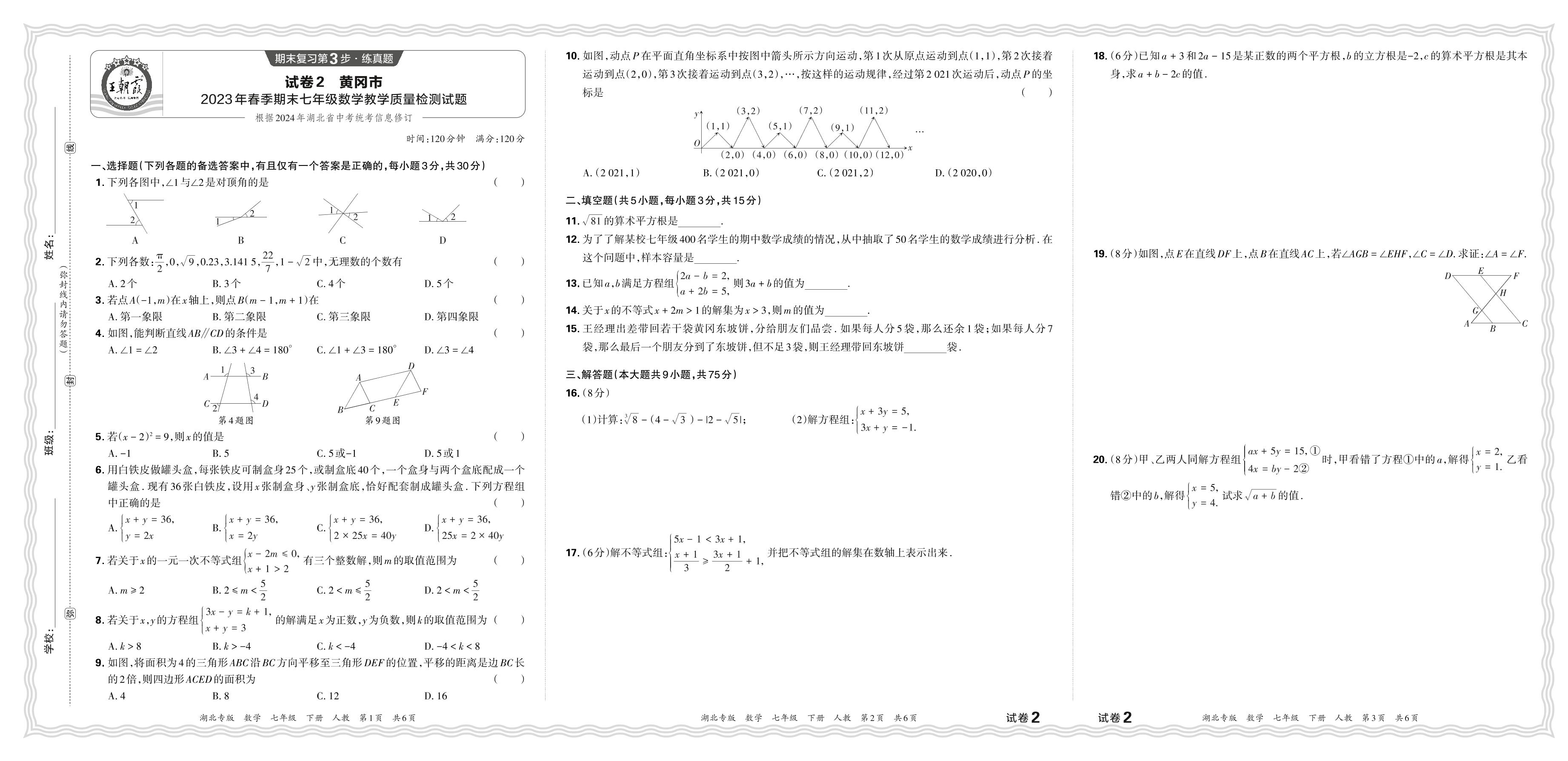 七年级数学人教版下册期末卷