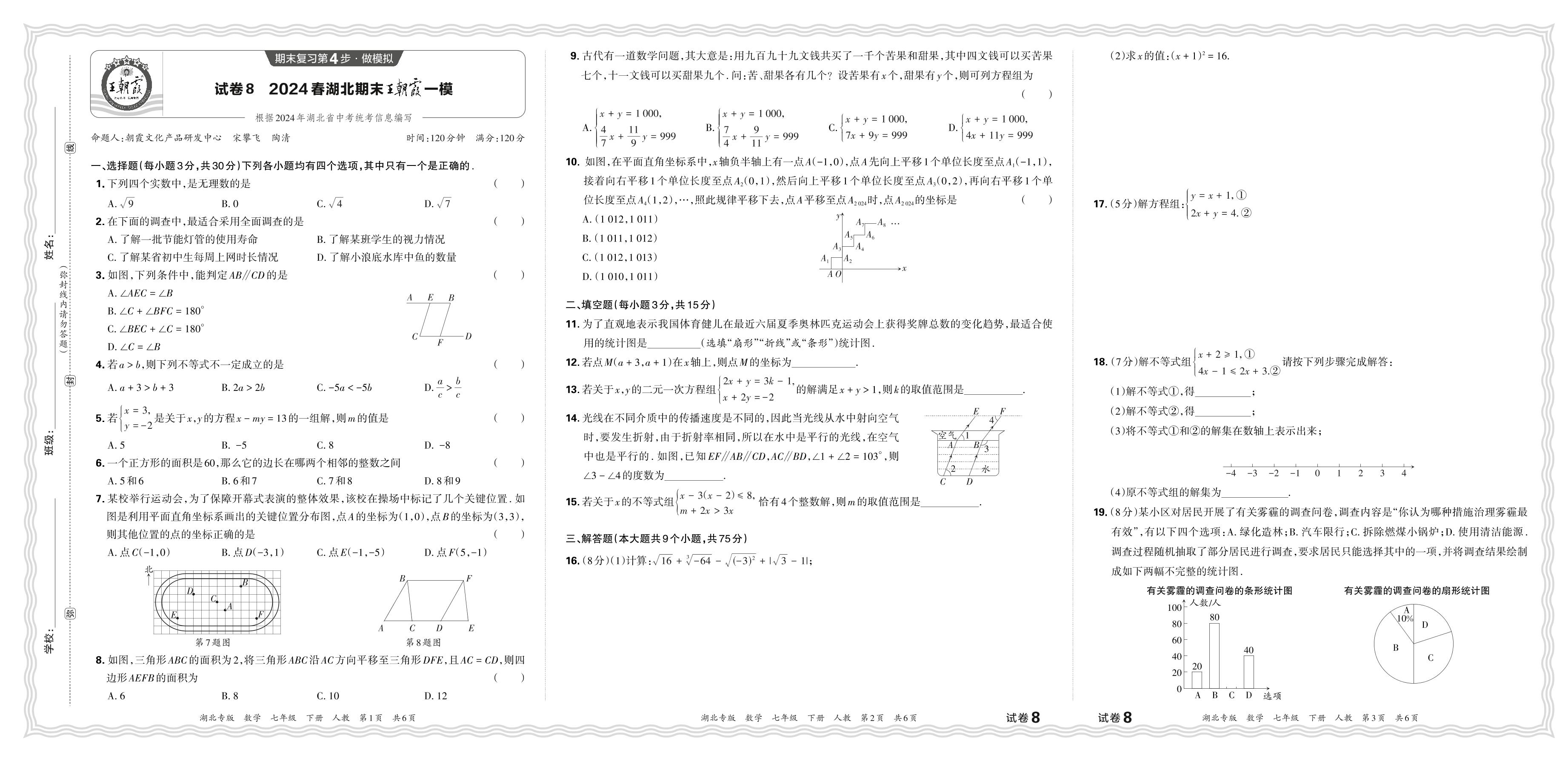 2024春下册七年级数学人教版 湖北期末王朝霞一模【8】