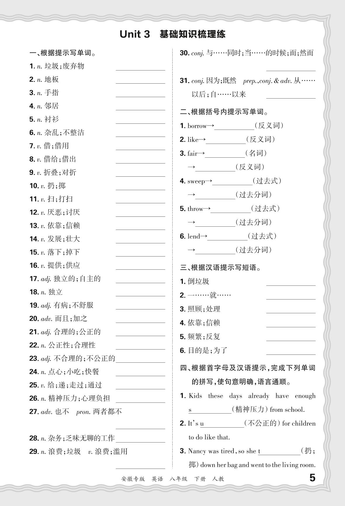 2024春下册八年级英语人教版 期末过课本安徽版·Unit 3 基础知识梳理练