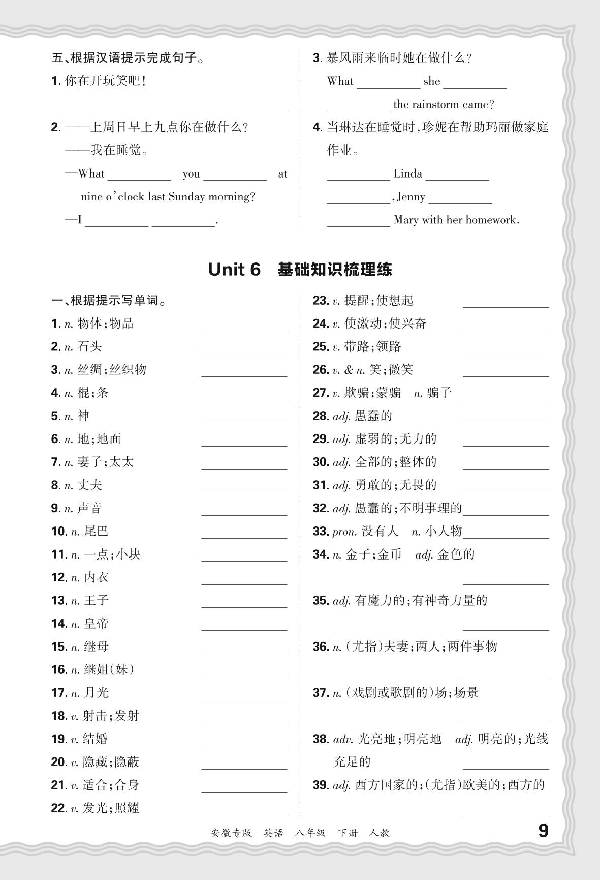 2024春下册八年级英语人教版 期末过课本安徽版·Unit 6 基础知识梳理练